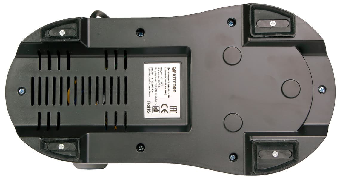 Основание платформы снабжено резиновыми ножками-присосками, поэтому и так массивный и неподвижный миксер стоит на столе, как пришитый (извините, ассоциации со швейной машинкой мы так до конца и не изжили, уж больно похож!). И передвинуть его просто так нельзя, надо с усилием оторвать от поверхности и поднять.