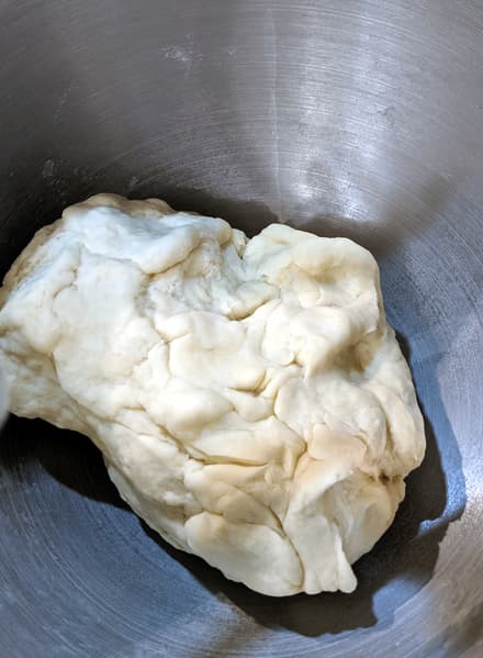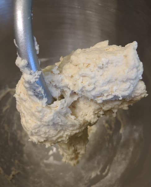 Такое же количество муки мы заварили таким же количество воды, но уже предельно горячей, почти кипятка. На этот раз тесто стало однородным сильно позже и было менее липким. А смешать эти две части для миксера было просто детской игрой.