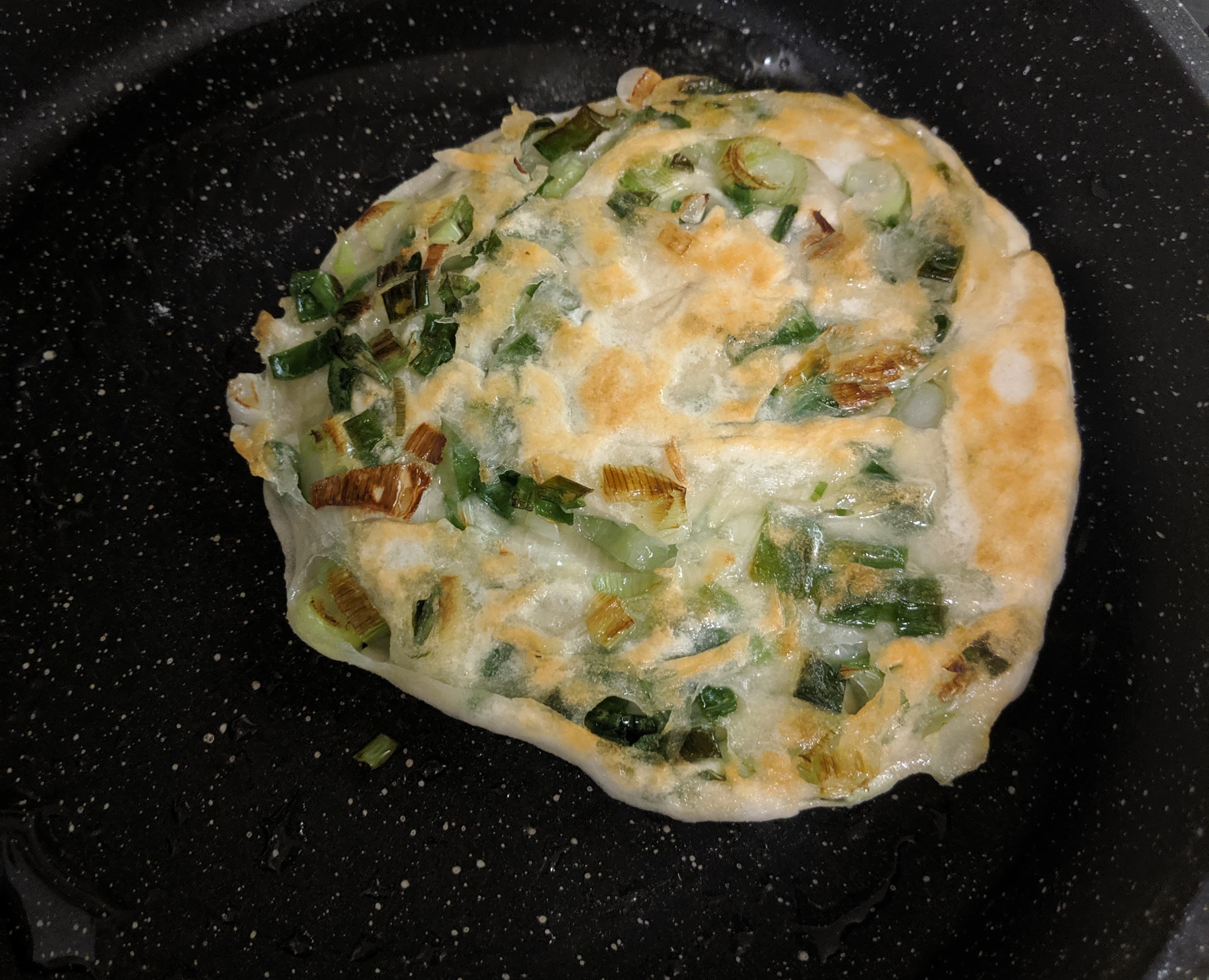 Замешивание теста для китайского блинчика с луком заняло суммарно (приготовление двух частей теста и их последующее смешивание) 3 минуты 38 секунд, причем 55 секунд потребовалось на вымешивание холодной части, 1 минута 58 секунд на горячую часть и 45 секунд на смешивание. Максимальное напряжение на минимальной скорости было 283 Вт, среднее около 192, а потратили мы на это все 0,013 кВт·ч.