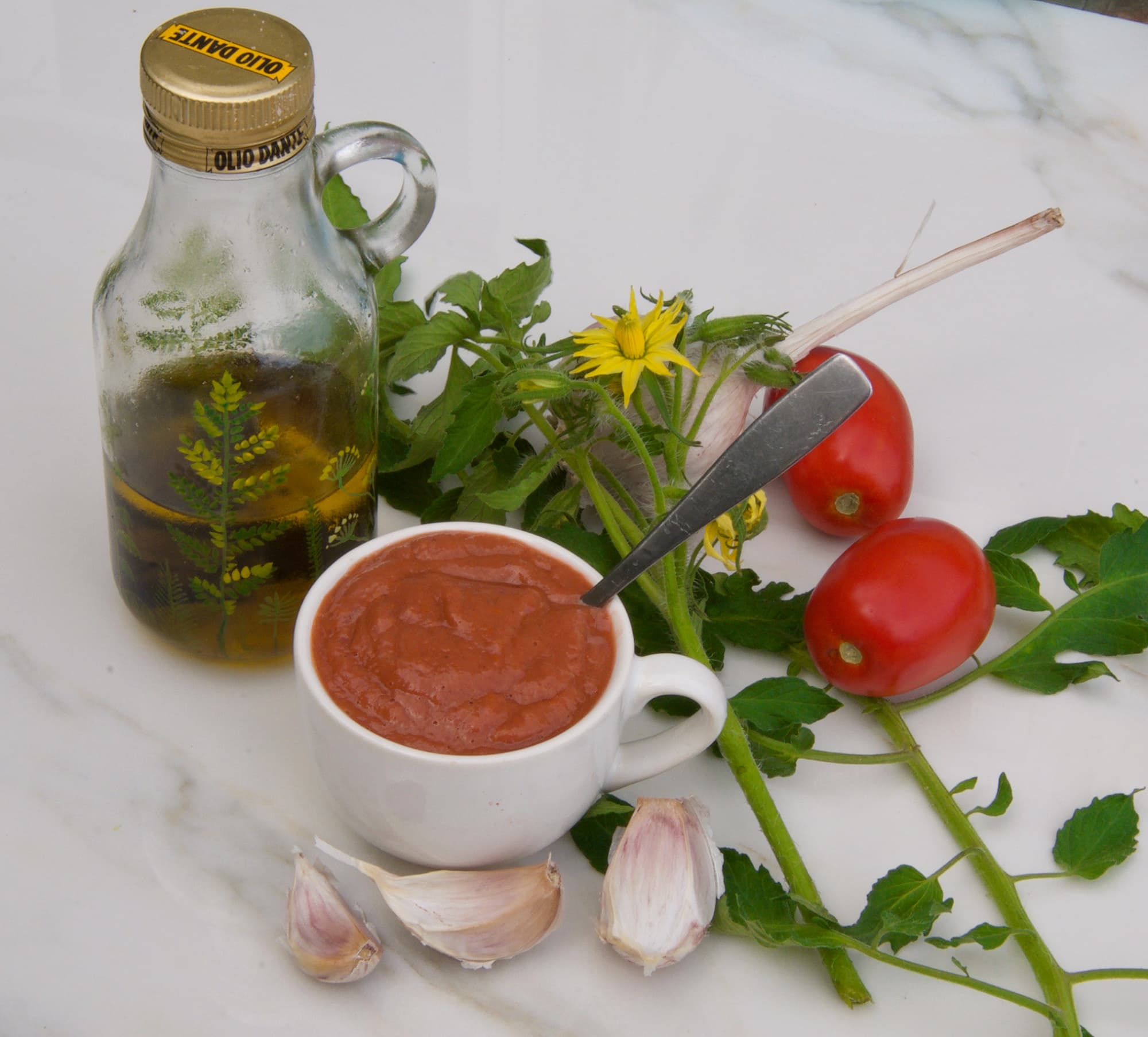 Нам так понравился результат, что мы добавили в томатную массу соль, чеснок, базилик, оливковое масло и немного вареного картофеля. В результате получили отличный томатный соус.