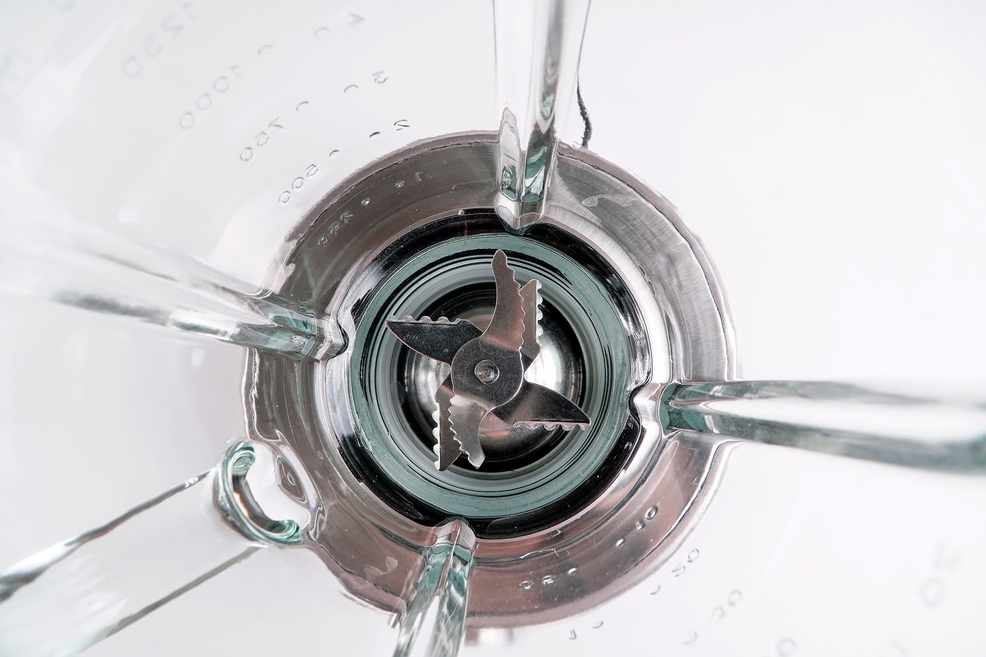 Внутрь чаши, через силиконовую уплотнительную прокладку, с помощью пластикового стопорного кольца вставляется блок ножей. Он представляет собой шесть небольших серрейторных лезвий из нержавеющей стали.