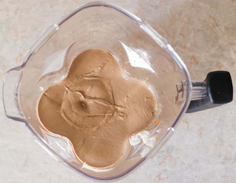 Затем выложили нут в чашу блендера, добавили немного отвара, тхину, оливковое масло, чеснок, лимонный сок, соль и молотую зиру. Измельчали всего 6 минут 14 секунд. Скорость была увеличена до пятой. За время работы блендер потребил 0,062 кВт·ч.
