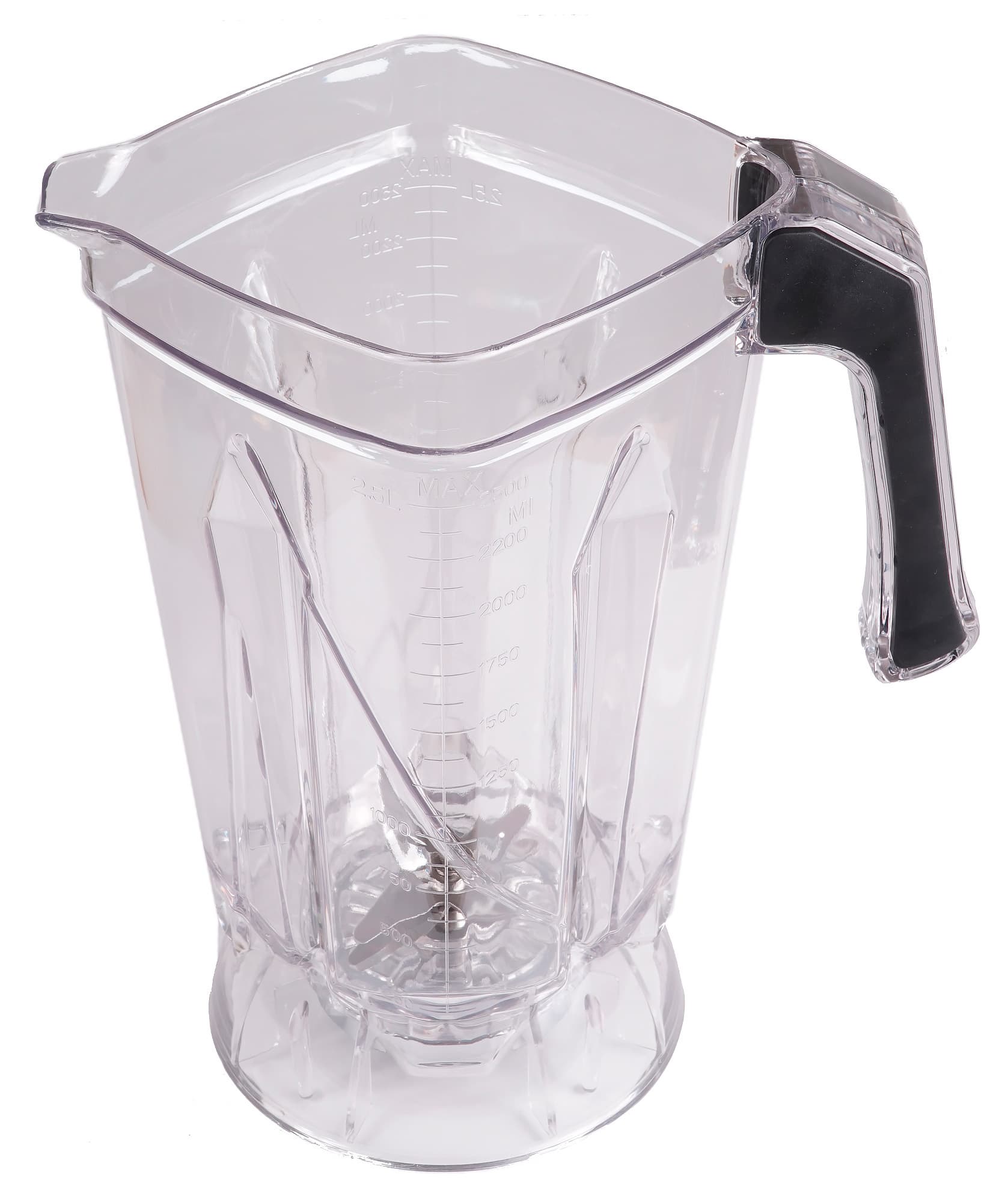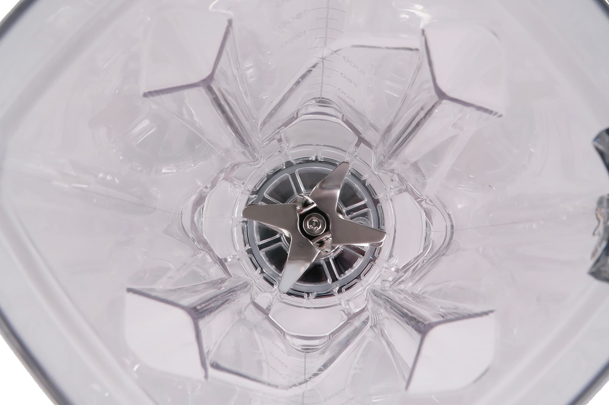 Чаша выполнена из пищевого пластика, рабочий объем — 2,5 л, на самой чаше есть деления с шагом в 250 мл. На дне чаши — 8 ножей из нержавеющей стали.