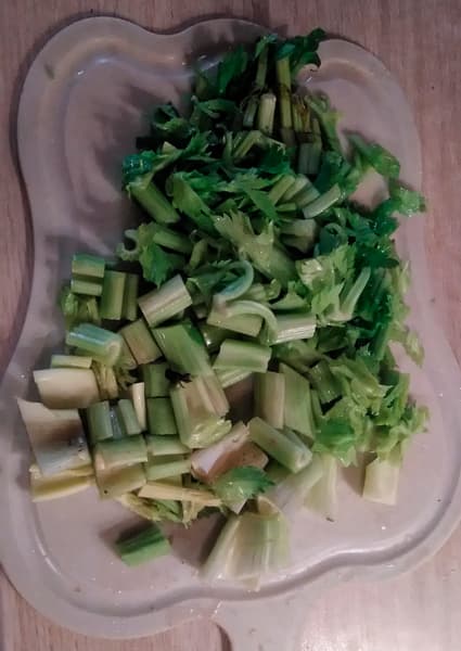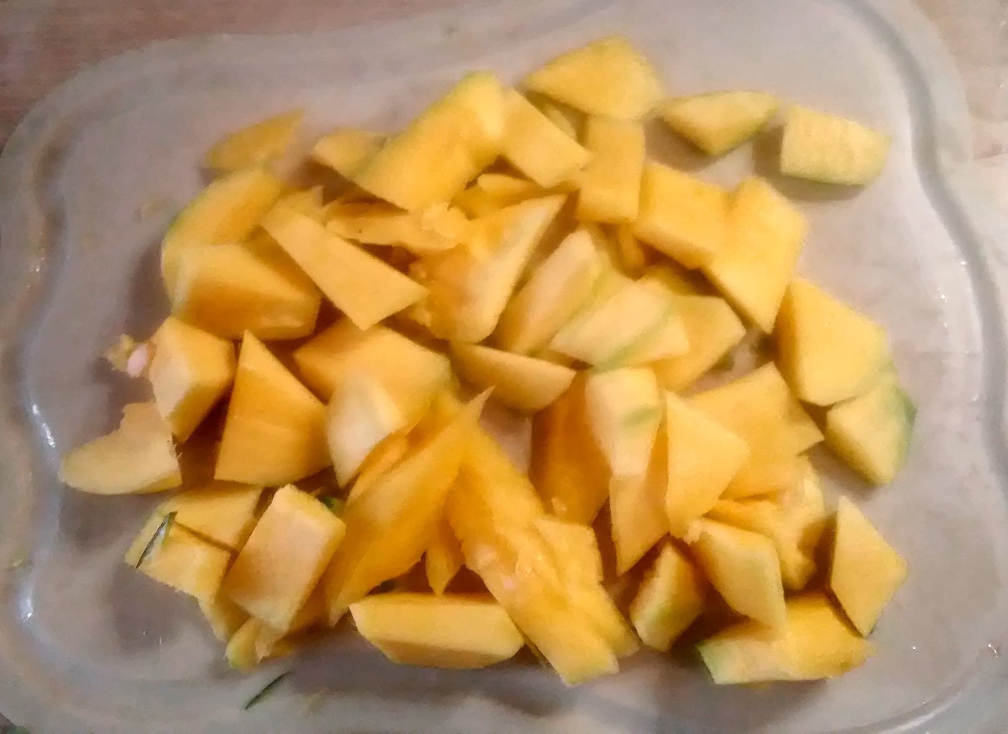 Увы, мы не молодеем, и иногда приходится заниматься спортом и даже слушать врачей диетологов. Кроме безостановочного спорта, врачи порекомендуют подходящую к спорту диету, а главное — то, чем можно восстанавливать потерю жидкости во время занятий. Мой врач посоветовал сельдереевый смузи — говорят, что при переваривании сельдерея человек тратит больше калорий, чем получает. Для усиления вкуса — манго, он тоже, как говорят, несмотря на сладкий вкус, способствует похуданию. Сказано — сделано. На любимом рынке куплены два манго и упаковка сельдерея, в общей сложности — около 700 г. Манго мы зачистили, отделили косточки и порезали на произвольные куски, сельдерей — порезали на равные части.