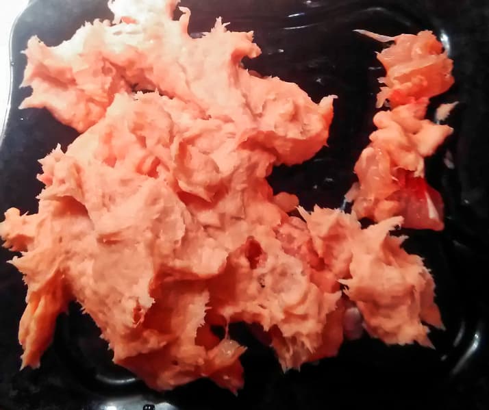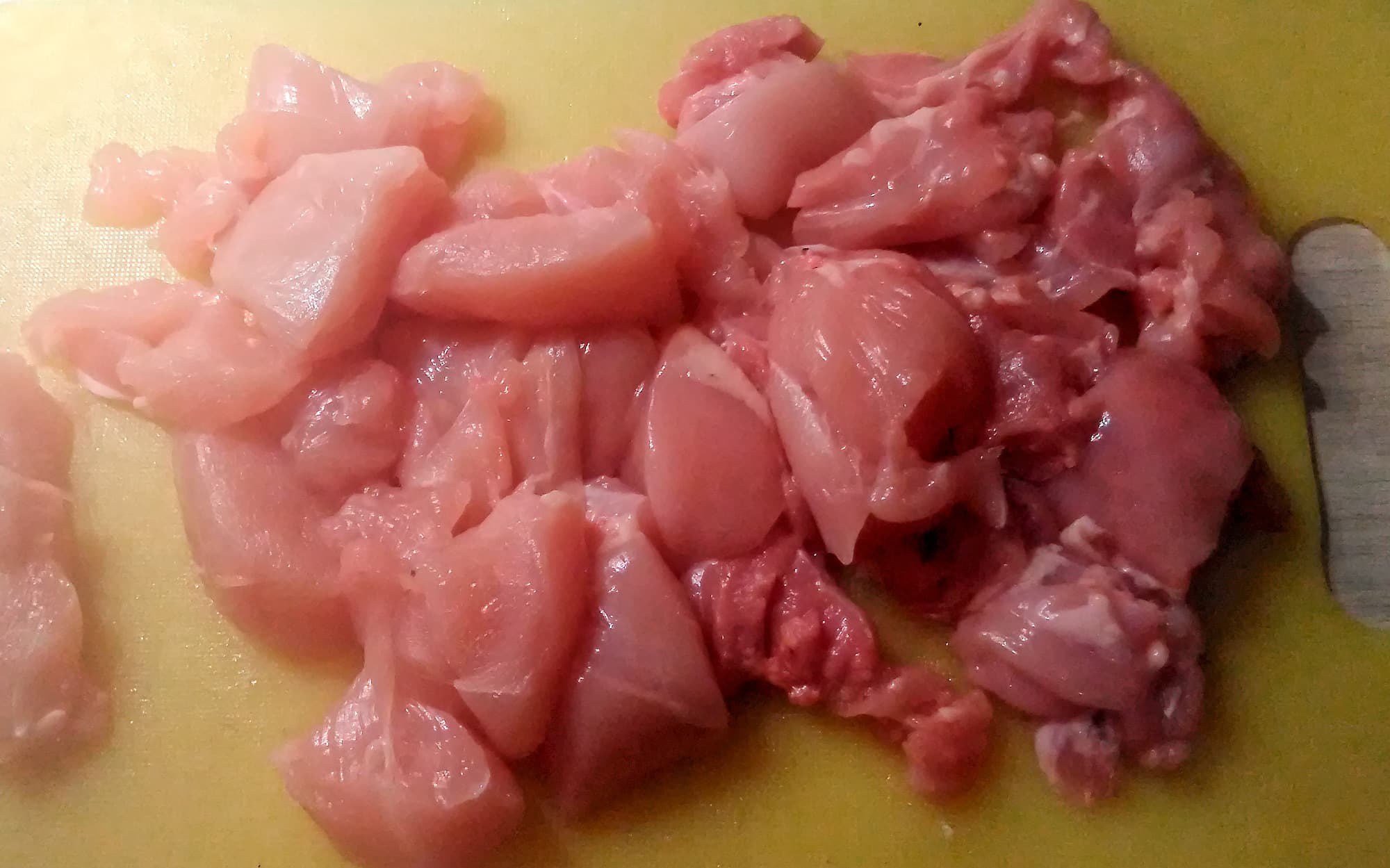 Тут нас ждали первые проблемы, хотя, казалось бы, их не должно было быть. Для изготовления фарша мы купили 600 граммов филе грудки и 400 граммов филе бедра. Все было нарезано на рекомендованные производителем куски, а мясо было тщательно проверено на случай того, что где-то останется кусок хряща или кости.