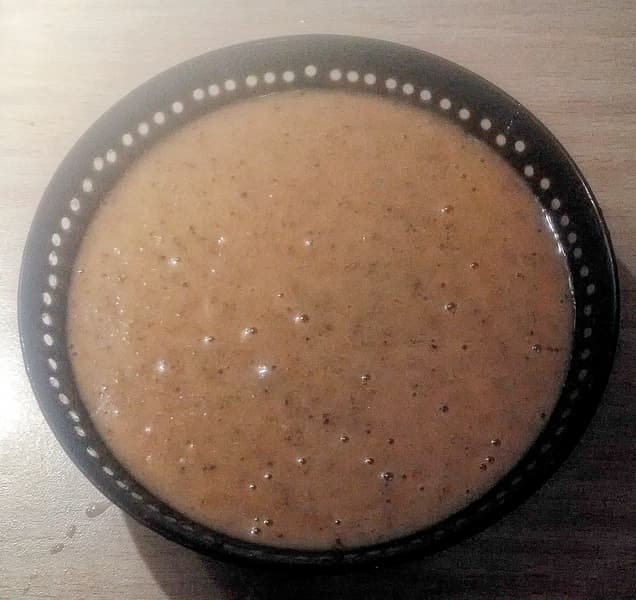 Полученная смесь три часа выпаривалась, в процессе на различных стадиях туда добавлялись специи и приправы: порубленная зелень и чеснок, молотый перец и перец-горошек, соевый соус, два вида уксуса и многое другое.