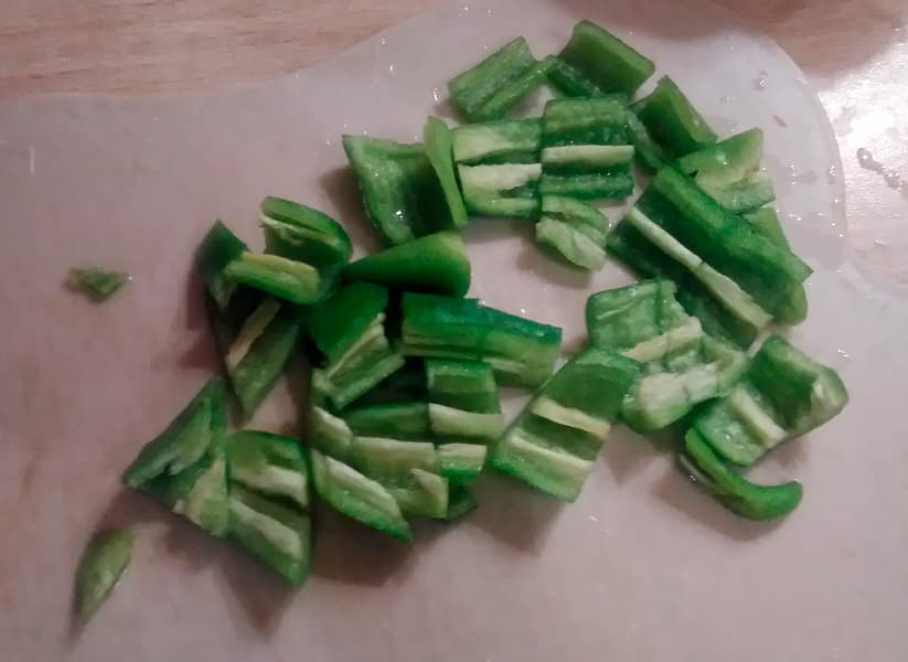 Семена и сердцевину из перцев мы удалили: хотелось остроты, но не запредельной.