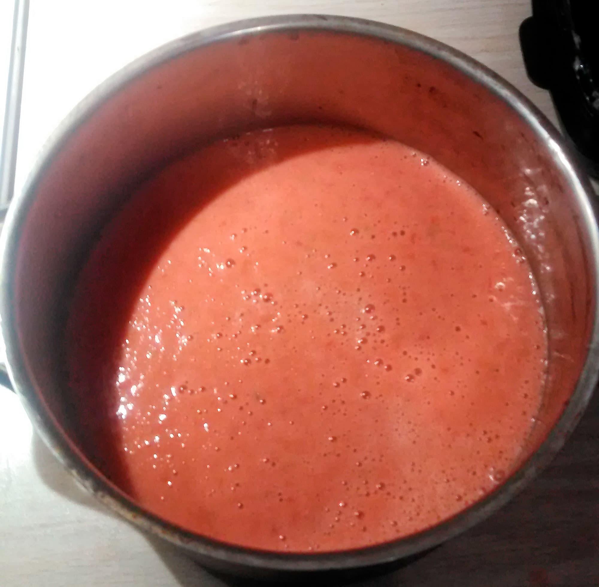 Итоговый результат надо было снова довести до гомогенного состояния. Кетчуп мы остудили и погрузили в блендер, включив режим «соус». Результат — отличный продукт, однородный по составу и идеальный (на наш взгляд) по вкусу.