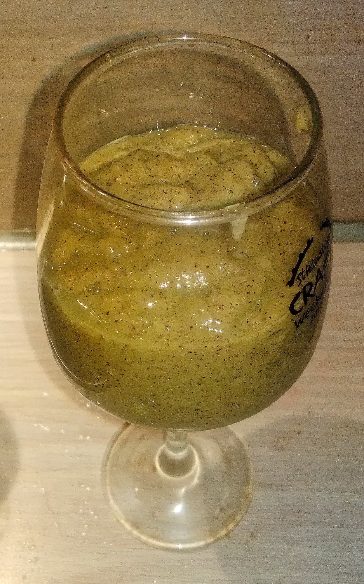Массу мы, согласно рекомендации, поделили на две части и поставили режим «фрукты». Результат — идеальная гомогенная смесь, еще и насыщенная кислородом.