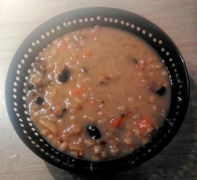 Часто хочется необычного из обычного. Почему бы не превратить русский традиционный грибной суп в нечто франкоподобное, например в суп-пюре? За основу мы взяли «обычный» грибной суп — три вида грибов, стандартная «обжарка» (лук и морковь), немного картофеля, перловая крупа и приправы.