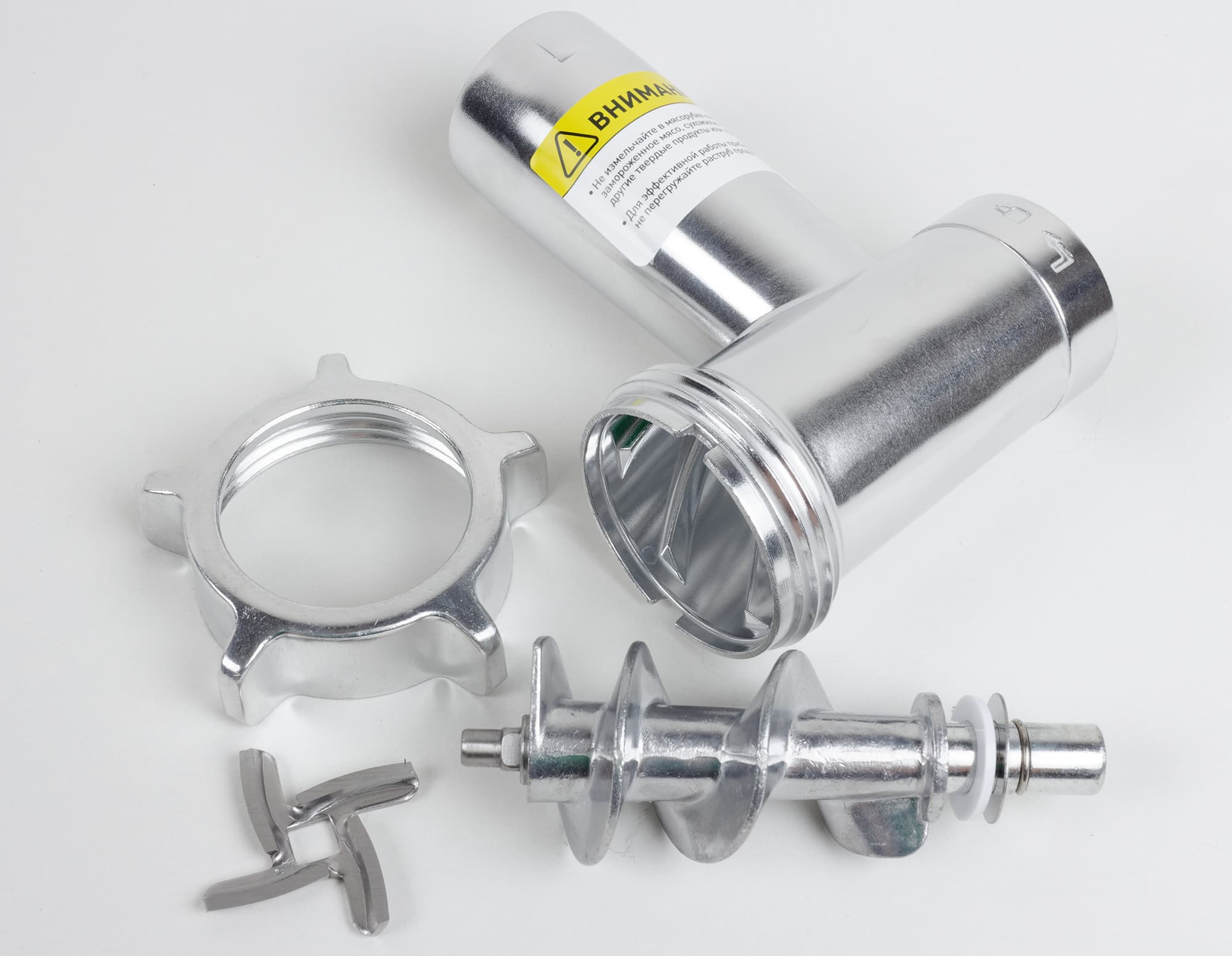 Важной частью модели KT-1367 является блок мясорубки со множеством разных насадок.