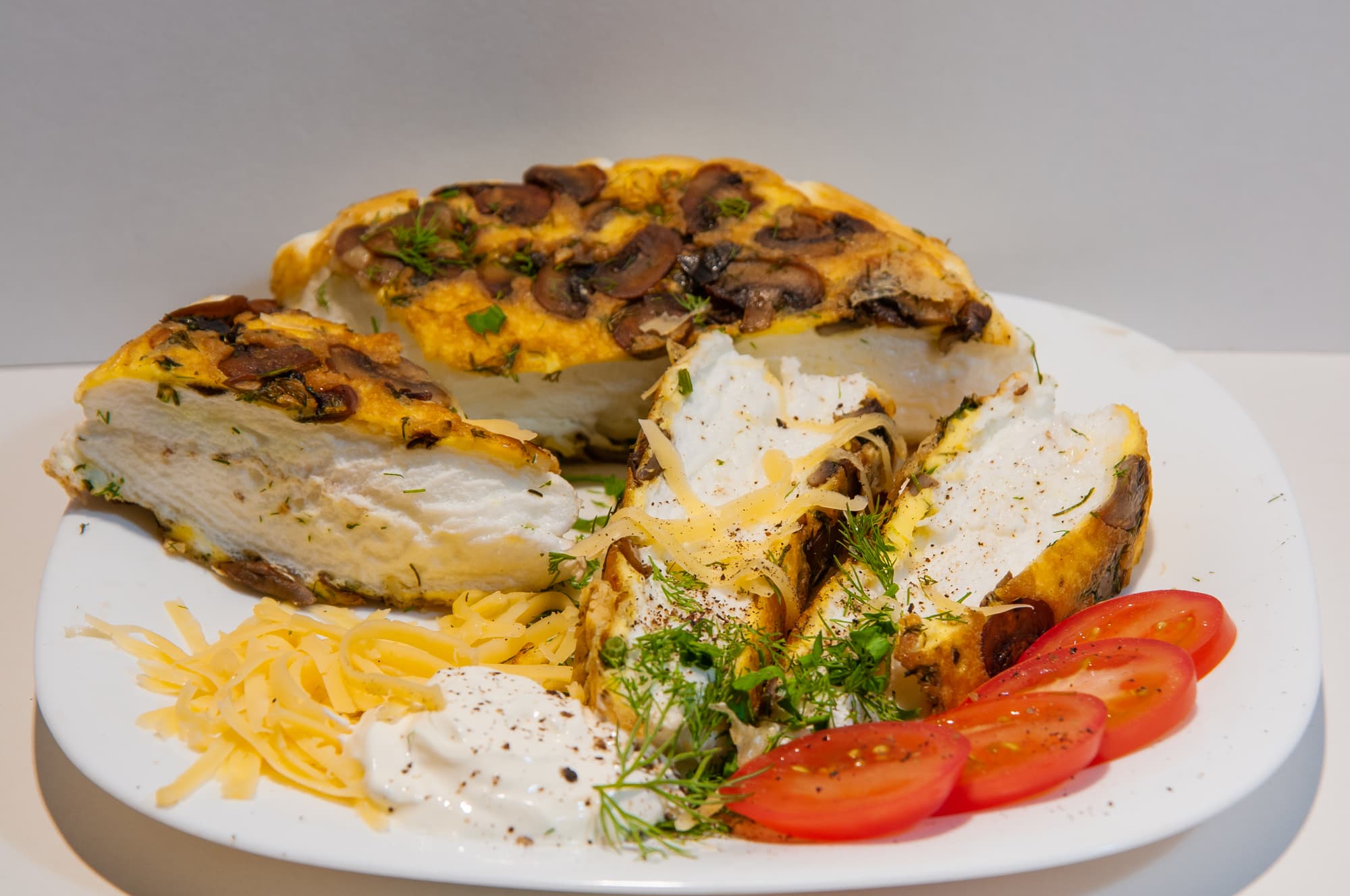 Воздушный слоеный омлет с жареными грибами