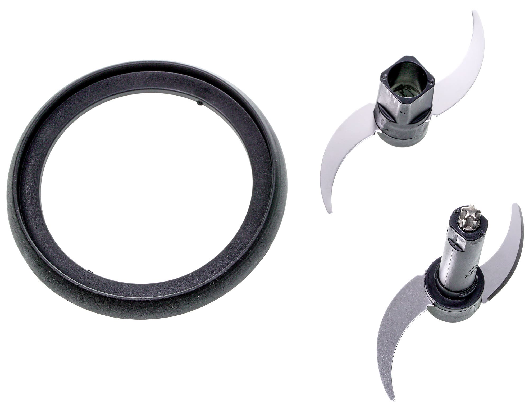 С точки зрения внешнего вида KT-1390 — совершенно стандартный представитель своего вида. Чаша выполнена из прозрачного толстого стекла, никаких рисок и отметок на ней нет. На дне чаши мы видим неподвижный металлический штифт, на который устанавливаются ножи. Ножек у чаши нет, но на поверхности она располагается устойчиво. Для подстраховки и снижения шума можно подложить под нее заботливо предоставленное производителем резиновое кольцо.