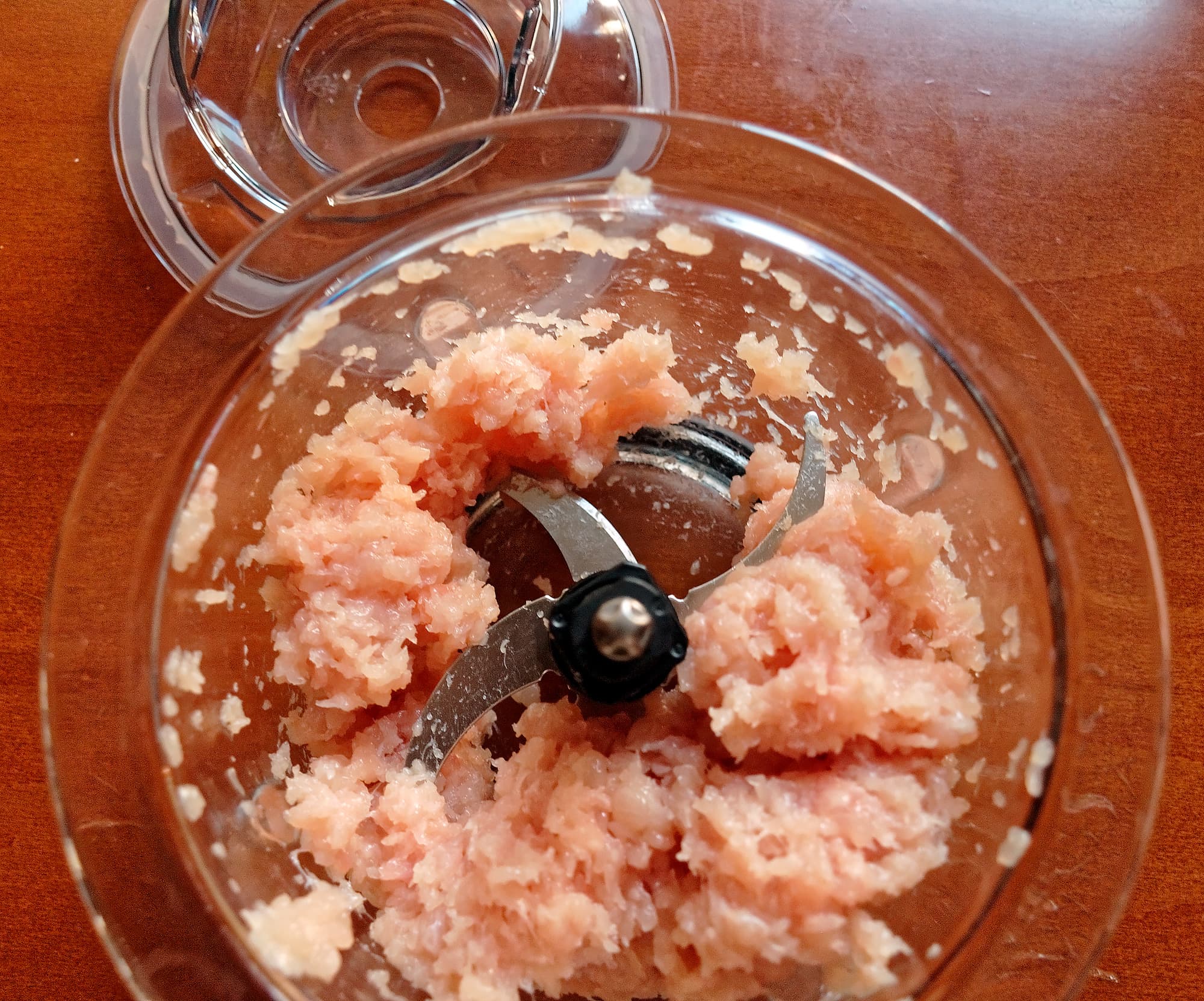 Начали на первой скорости, но довольно быстро перешли на вторую. За 20 секунд получили однородный фарш, неразмолотых кусочков не обнаружили, как ни старались.