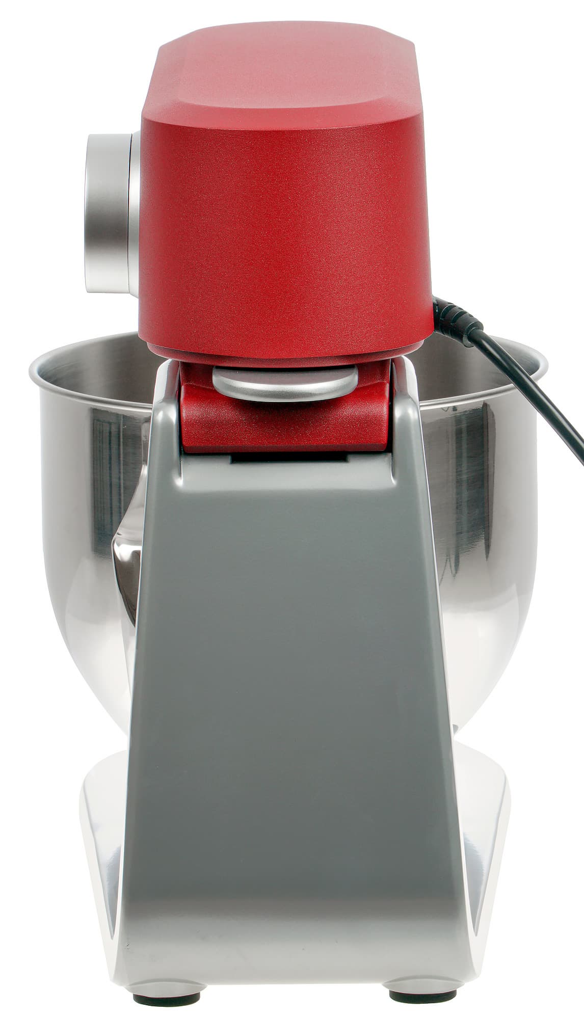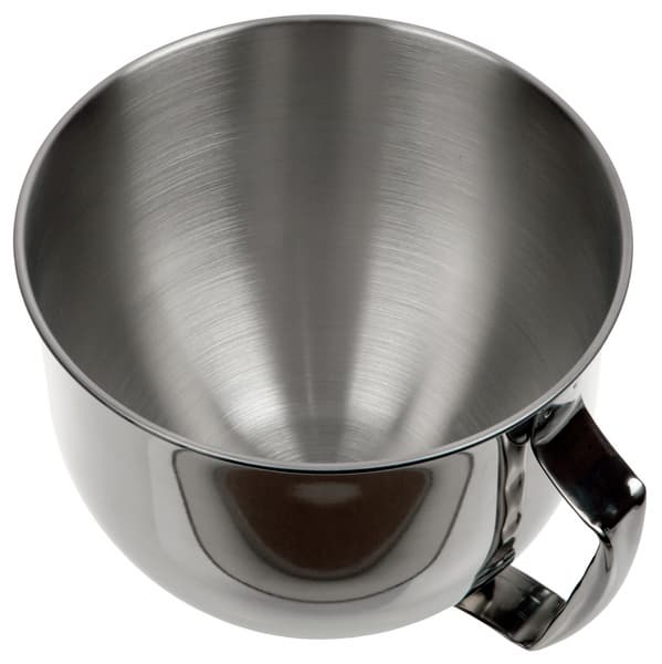 Чаша имеет объем 5,2 литра, сделана из нержавеющей стали и для удобства работы снабжена ручкой. На корпусе миксера предусмотрено посадочное отверстие под установку чаши, в котором она фиксируется с помощью поворота.