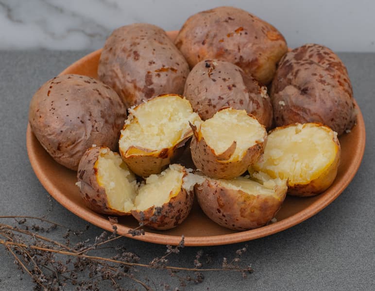 Для итальянских клецок мы взяли картофель, испекли его, выскребли его из кожуры ложкой в чашу миксера.