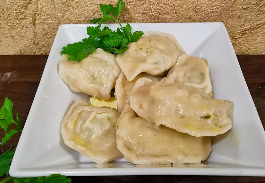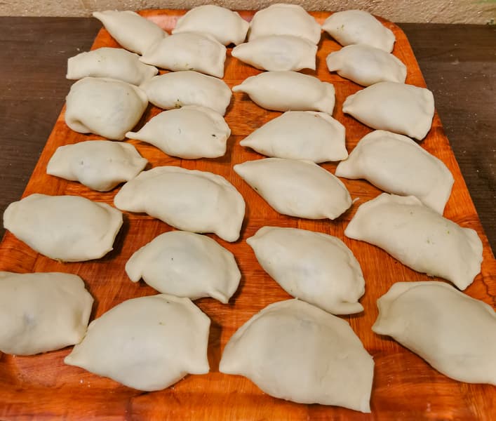 Пельмени получились довольно крупные, для более мелких тесто нужно раскатывать с меньшим расстоянием между валиками.
