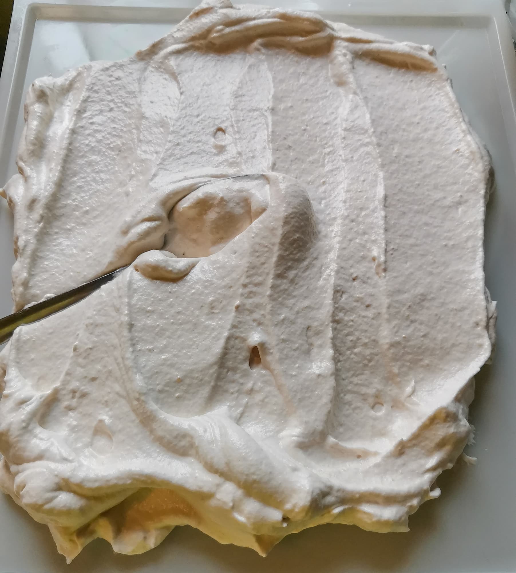 В остальную массу добавили инвертный сироп, взбивали еще 5 минут, затем, продолжая взбивать, влили разведенный агар-агар, отсадили зефир на пекарскую бумагу.