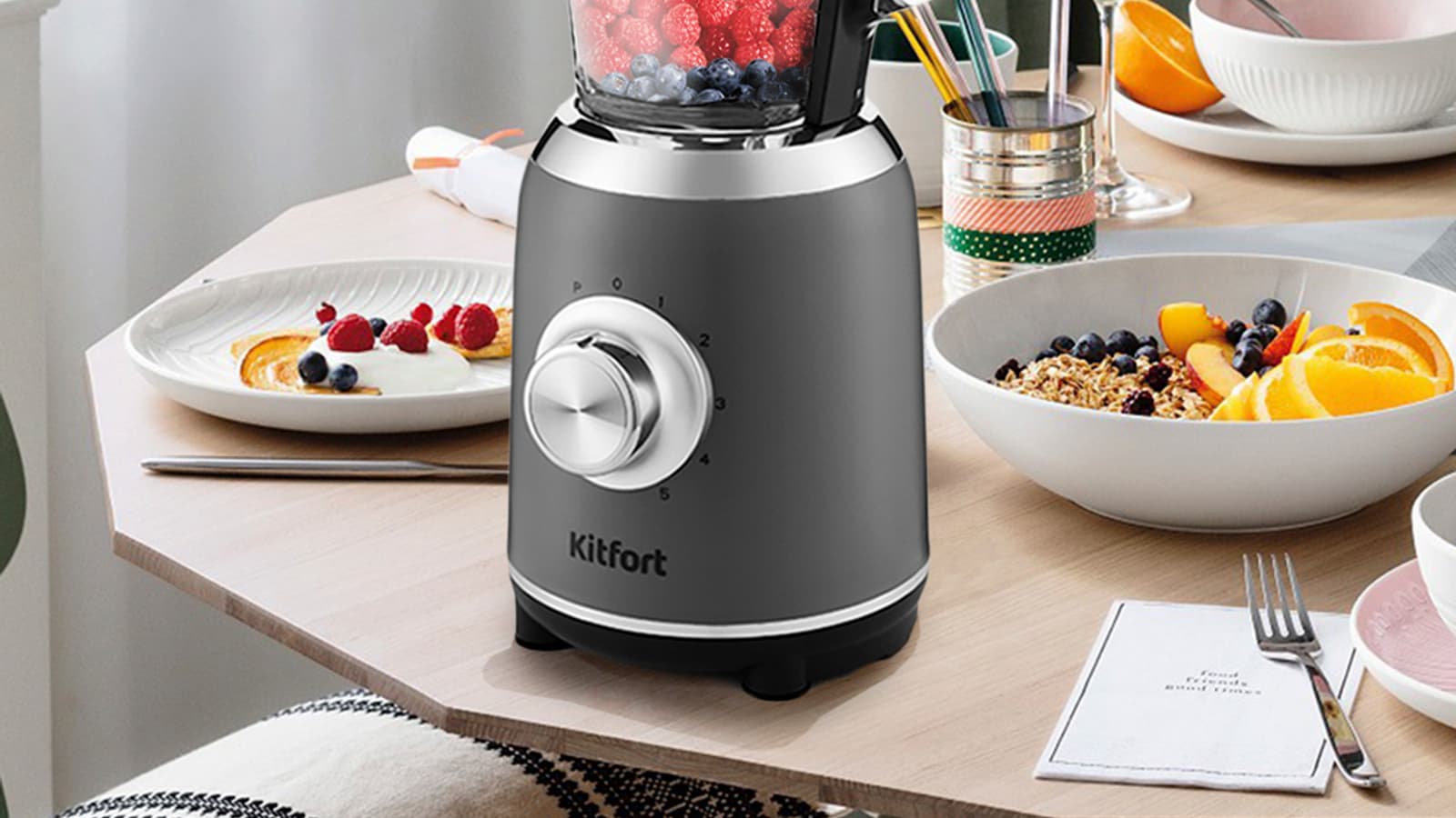 Стационарный блендер Kitfort KT-1397 относится к категории недорогих приборов, и для этого ценового сегмента он весьма хорош: качественно изготовлен, стакан большого объема и оригинальной формы позволяет приготовить как бокал коктейля, так и полтора литра супа-пюре. Конструкция блока ножей, конечно, простовата в сравнении с высокомощными блендерами, ну так Kitfort KT-1397 сто́ит в несколько раз дешевле и не претендует на гордое звание барного блендера.