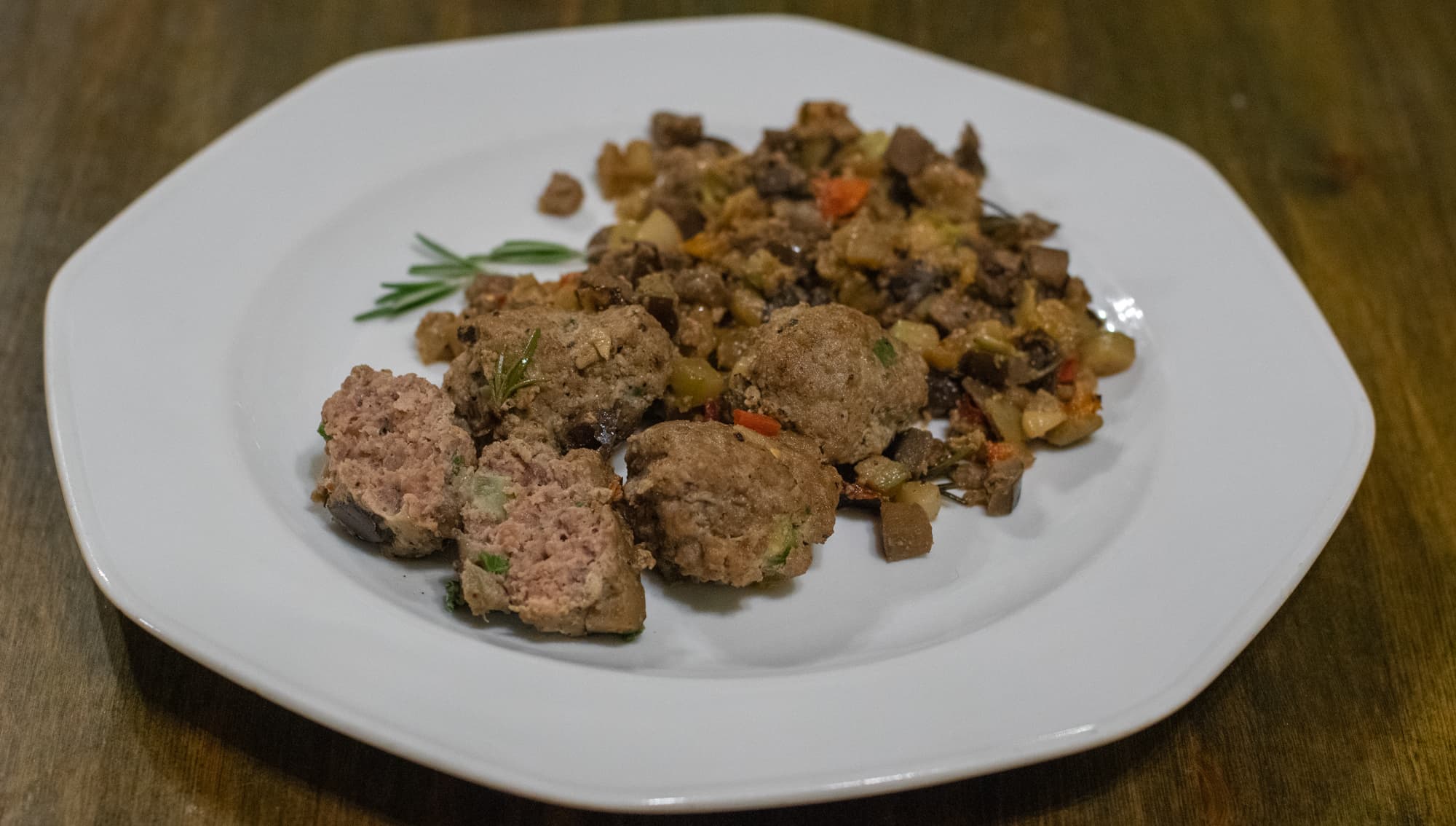 Готовили в течение 15 минут, периодически помешивая. Когда фрикадельки были уже готовы, снизили мощность до 300, закрыли крышкой и потомили овощи еще 20 минут — пока все собрались к столу.