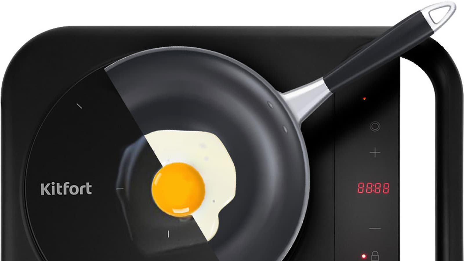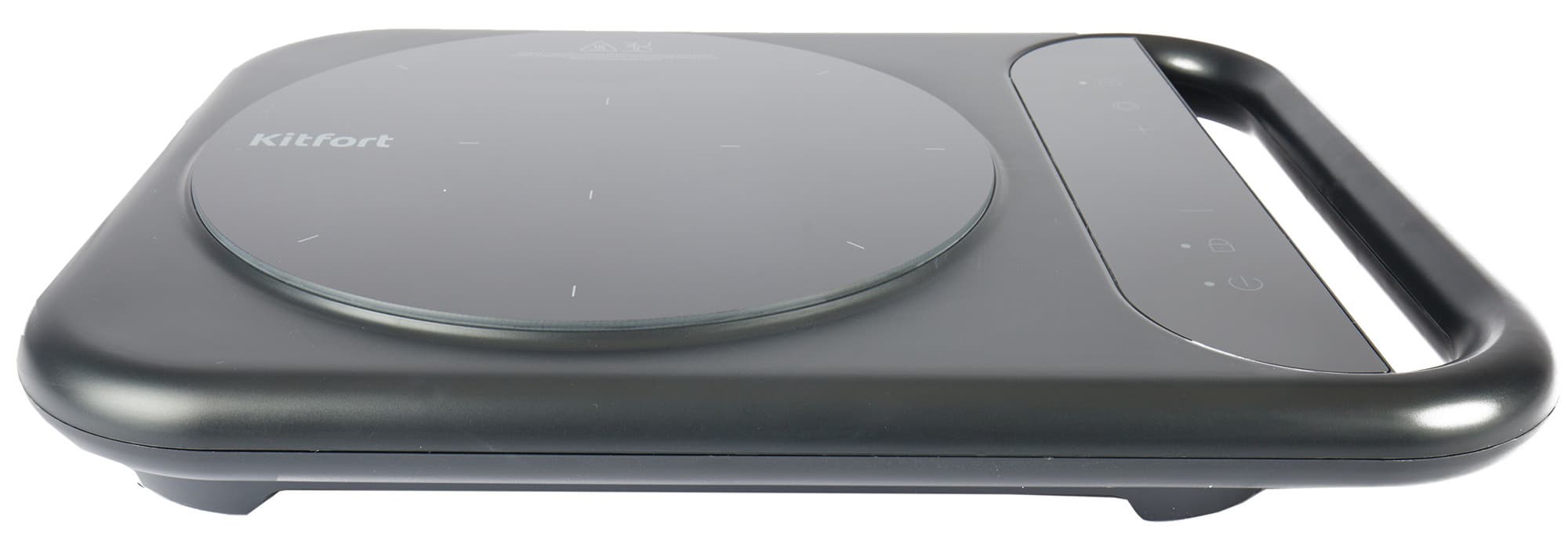 Индукционная плитка Kitfort KT-144 — интересный, но достаточно специфичный прибор. У нее отличный широкий диапазон регулировок мощности, есть таймер, управление удобное, вес небольшой. Однако дизайн прибора подойдет не для любой кухни.