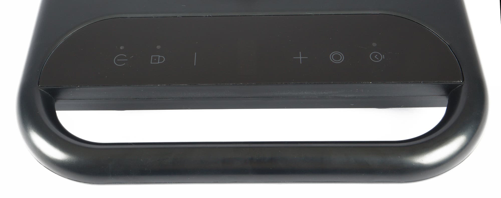 Панель управления расположена на переднем крае прибора напротив ручки. Управление сенсорное, довольно простое. Крайняя левая кнопка — «вкл./выкл.».