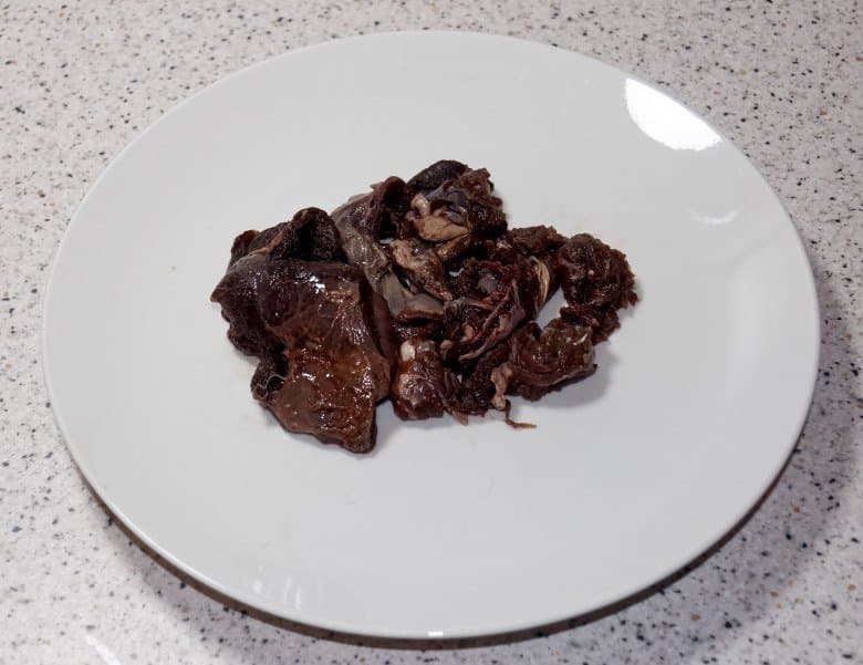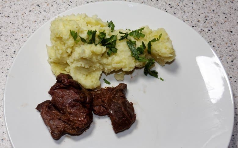 Результат оказался вполне приемлемым: мясо оказалась полностью готовым, а вот прожилки никуда не делись, поэтому оленину все равно пришлось нарезать на мелкие куски вручную.