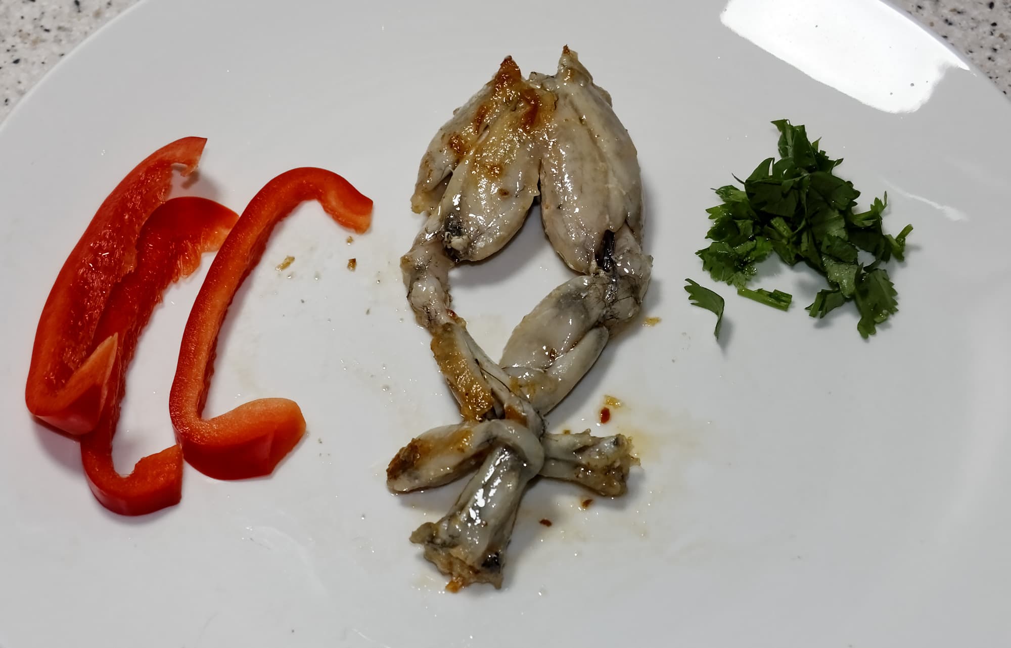 Лягушачьи лапки приготовились идеально: они оказались мягкими и буквально таяли во рту.