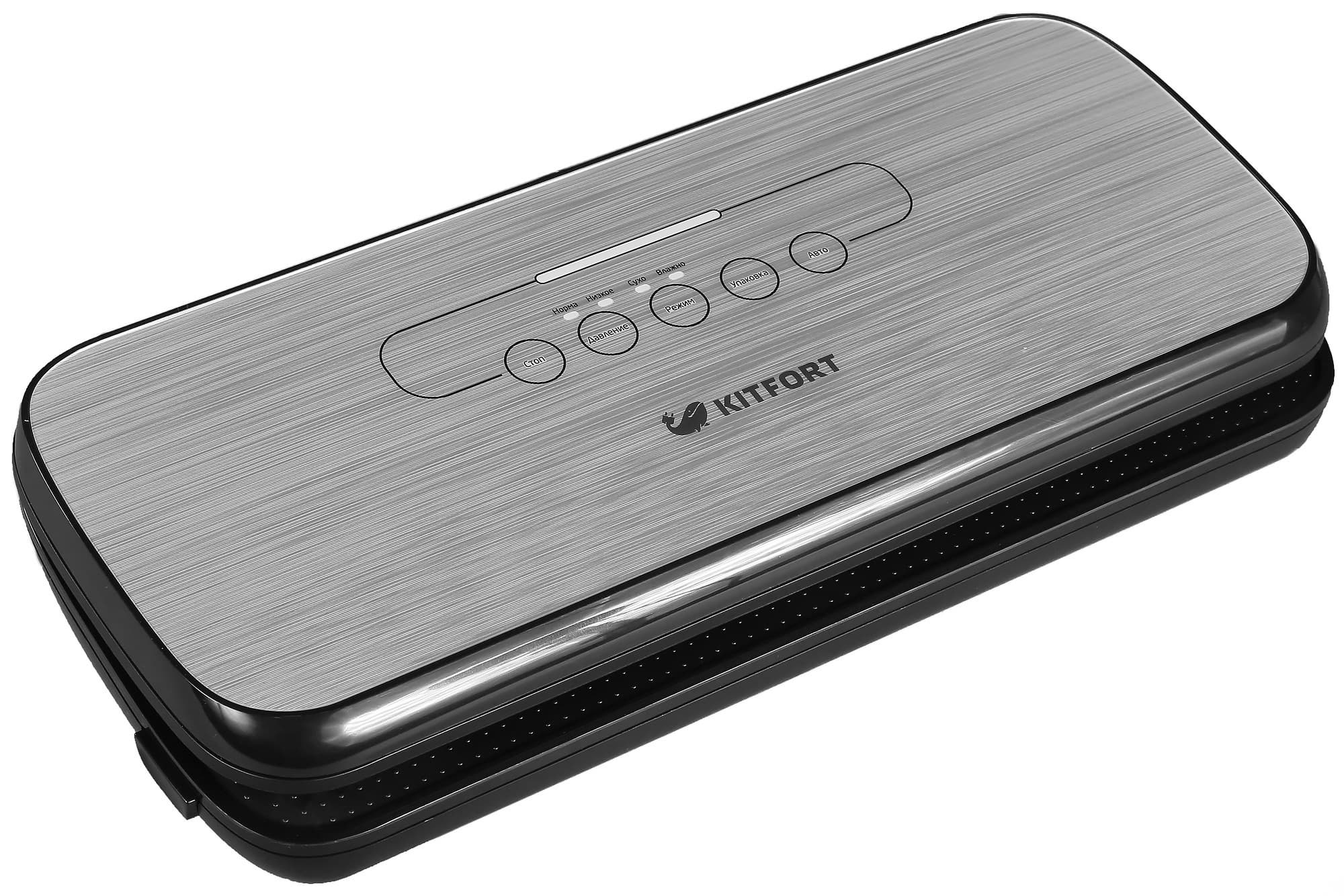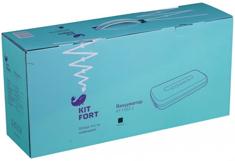 Вакуумные упаковщики уверенно вошли в нашу жизнь и, хоть и не стали частым гостем на обычной домашней кухне, перестали восприниматься как что-то экзотическое. Вакууматор KT-1502-2, выпущенный под российским брендом Kitfort, является типичным представителем этого класса приборов. Скажем больше: мы уже видели очень похожий упаковщик, выпущенный под другим брендом. Так что в данном случае, очевидно, Kitfort не стал изобретать велосипед, а просто воспользовался одним из готовых решений, ограничившись лишь переводом инструкции и надписей, а также нанесением на прибор собственного логотипа.