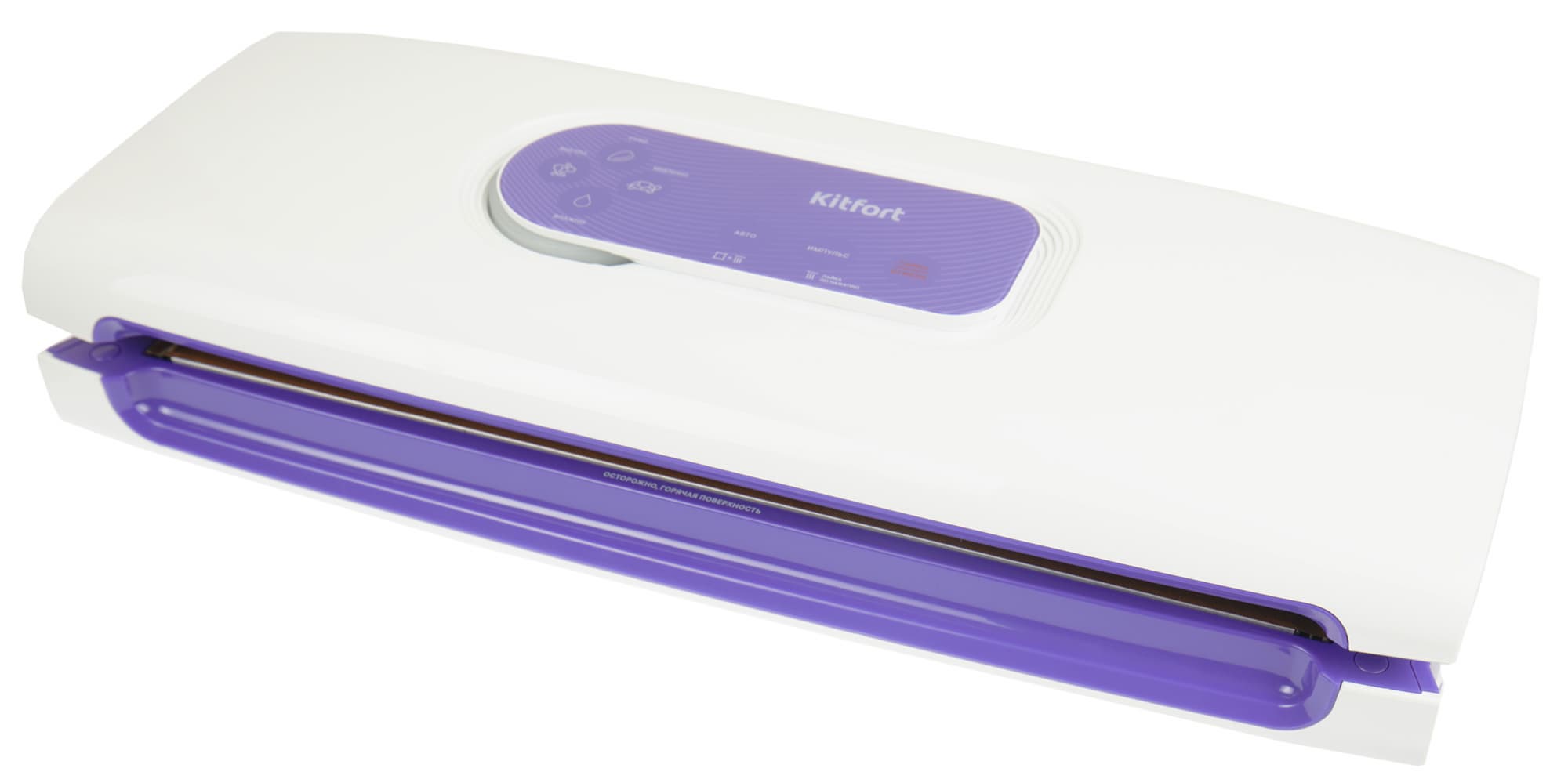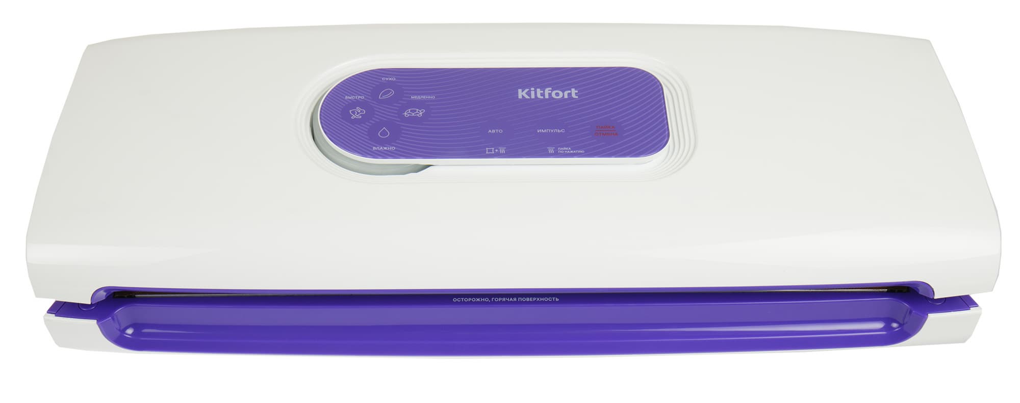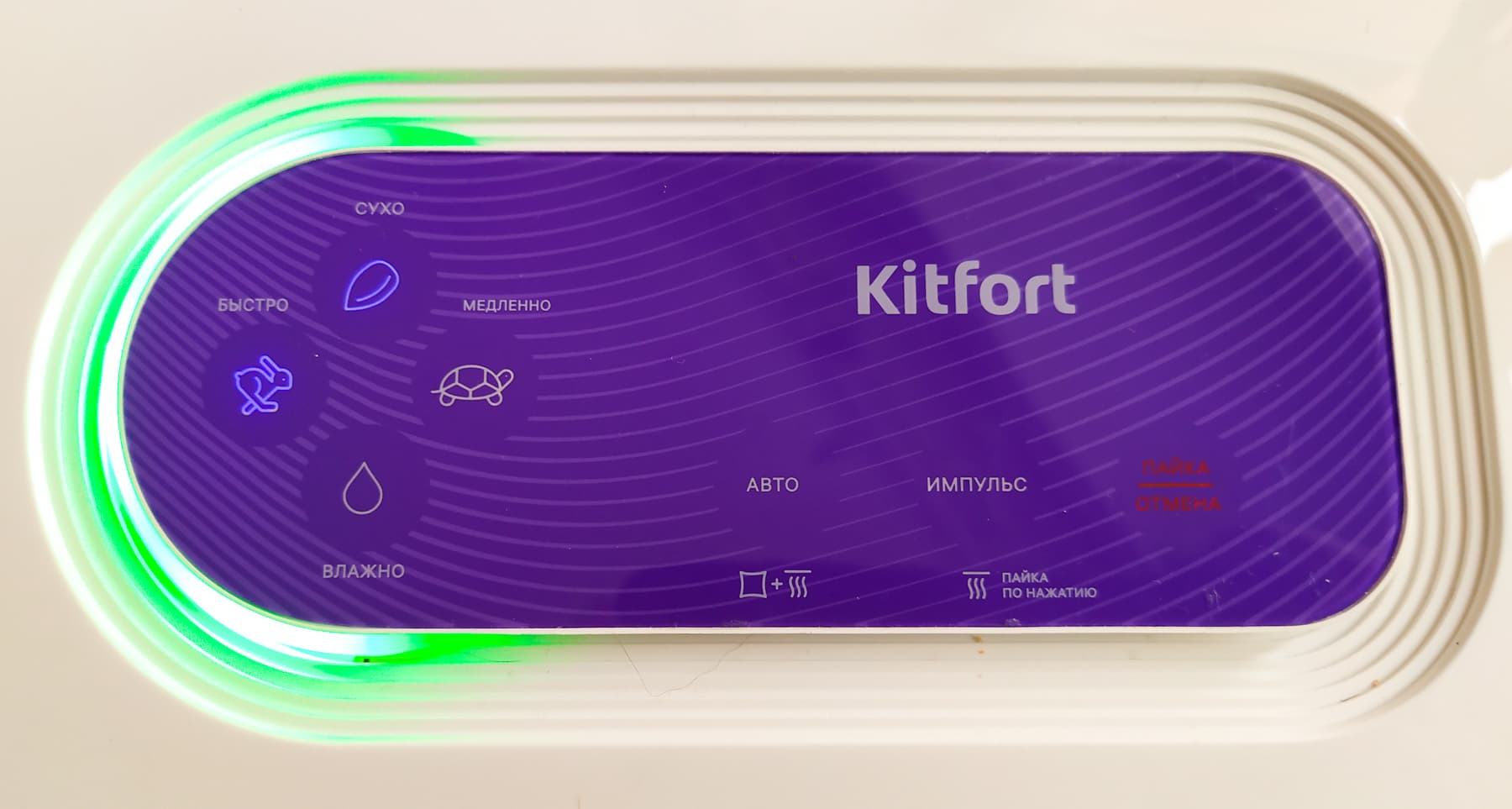 Панелей управления у Kitfort KT-1511 две: внешняя — для работы с пакетами и внутренняя — для работы с контейнерами. Начнем с внешней, сенсорной.