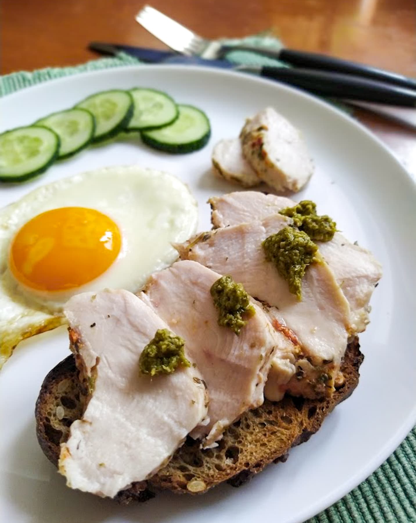 Пакет с курицей загрузили в мультиварку и варили при температуре 60 °C два часа. Грудка выходит нежнейшей. Можно быстро обжарить ее на сковороде для вкуса, мы же просто сделали с ней бутерброды на ароматном гречишном хлебе. Никакой колбасы не надо!