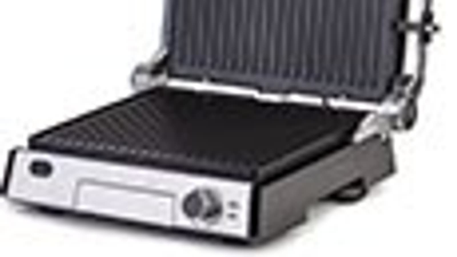 Материалы, из которых изготовлено данное изделие, весьма устойчивы, легко очищаются. Жарочные панели и поддон можно мыть в посудомоечной машине. Конструкция гриля позволяет жиру и с нижней, и с верхней пластин стекать в специальную емкость. Поверхности вокруг гриля пачкаются незначительно, и только при жарке очень сочных продуктов.