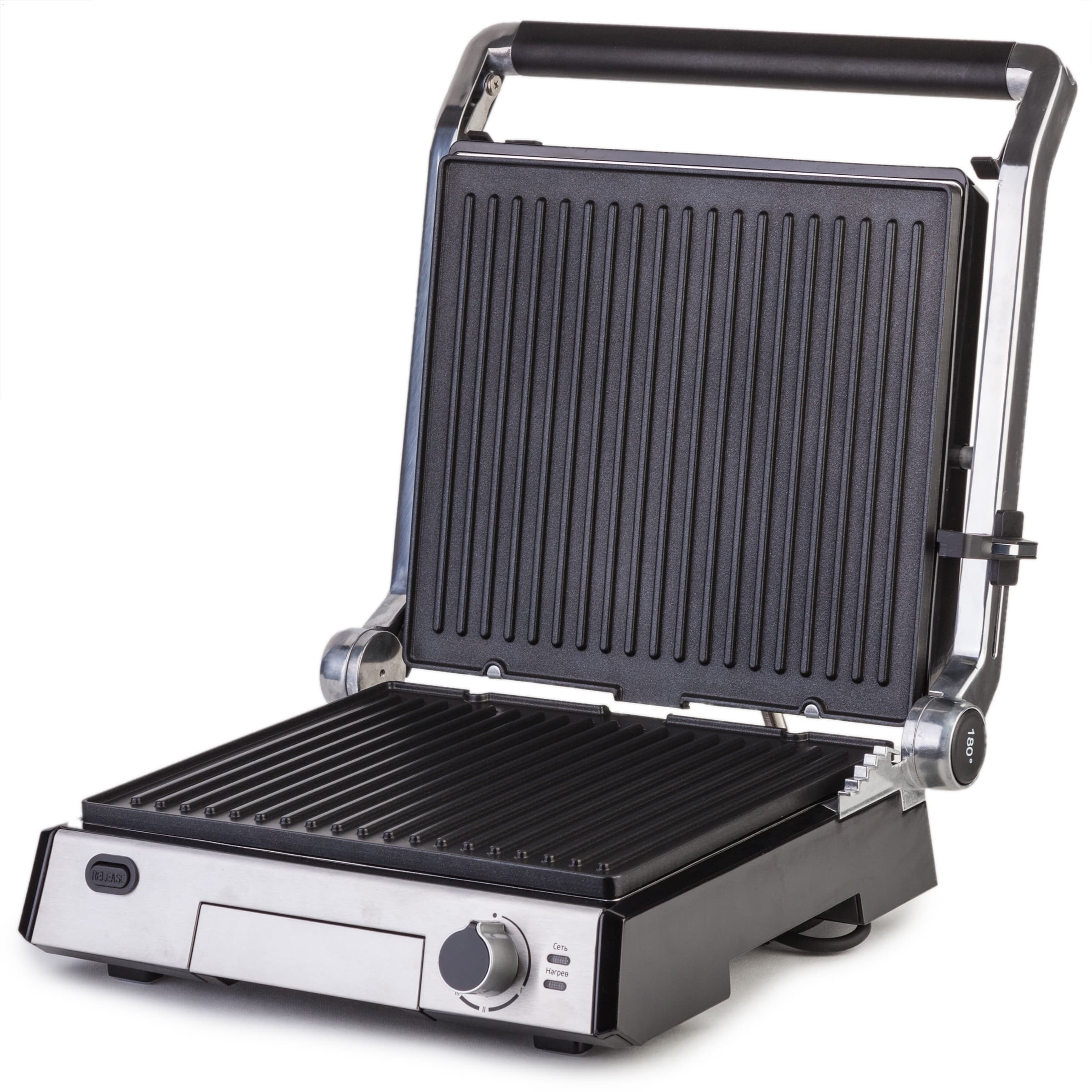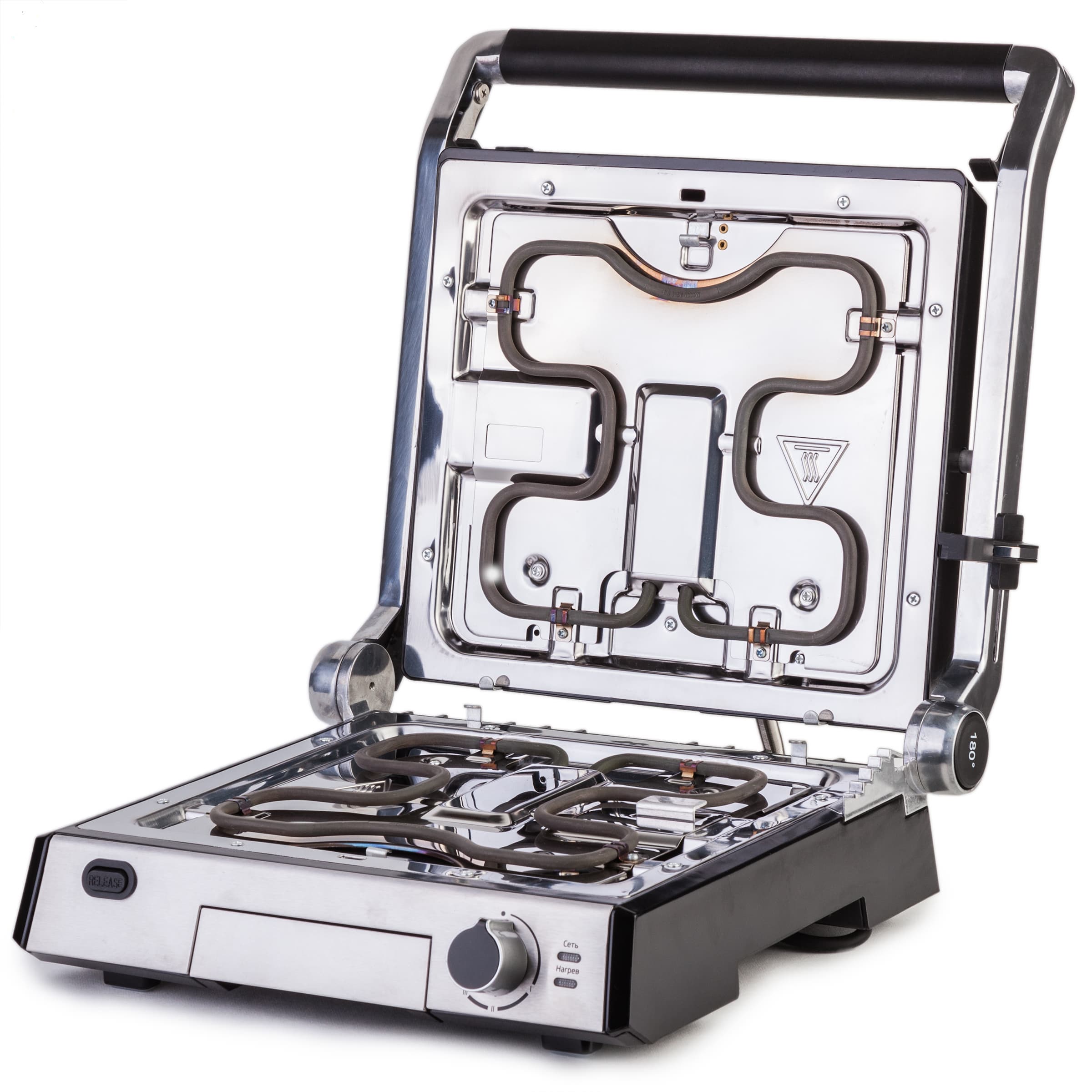 Гриль оснащен двумя рифлеными панелями, изготовленными из алюминия. С внешней стороны панелей нанесено антипригарное покрытие.