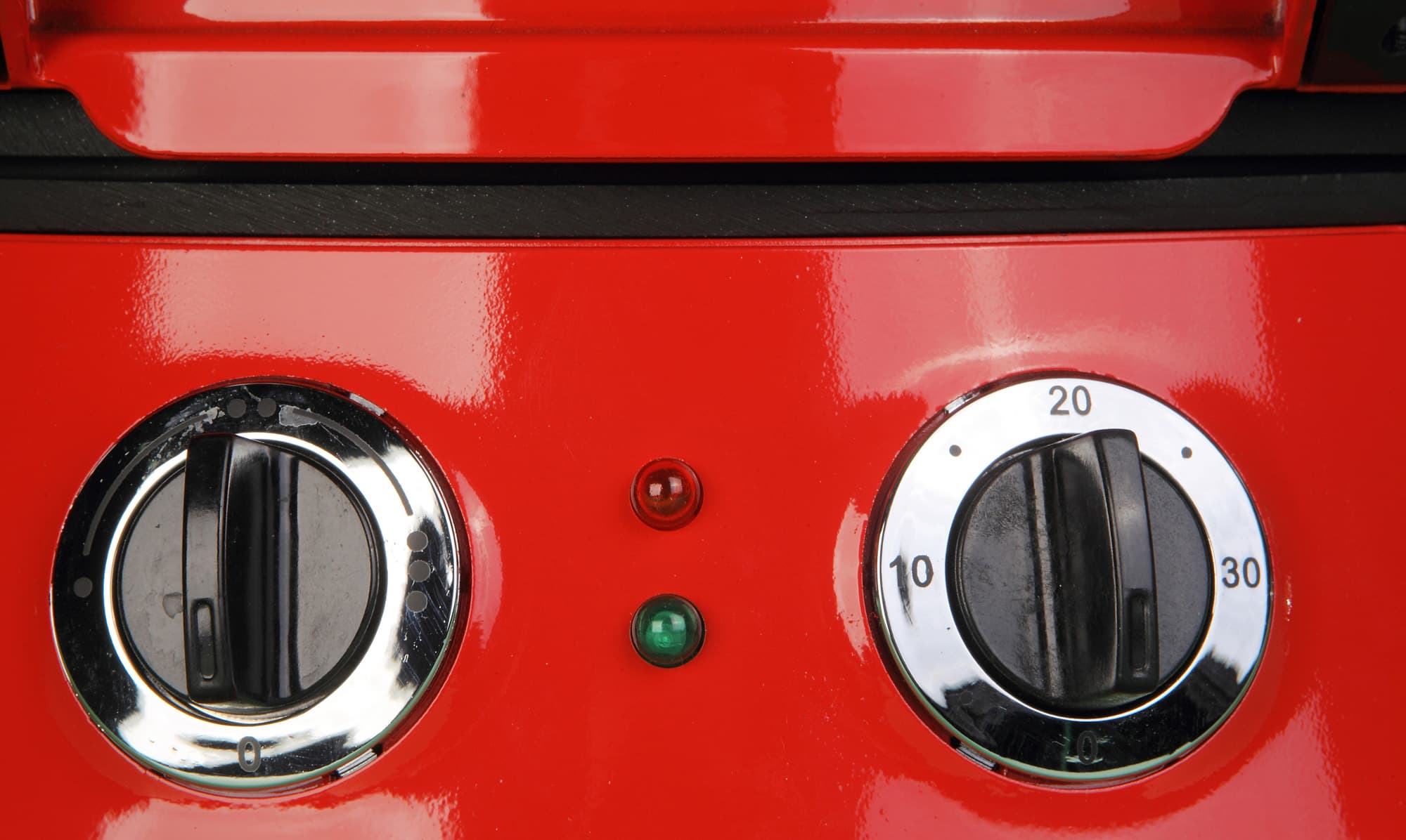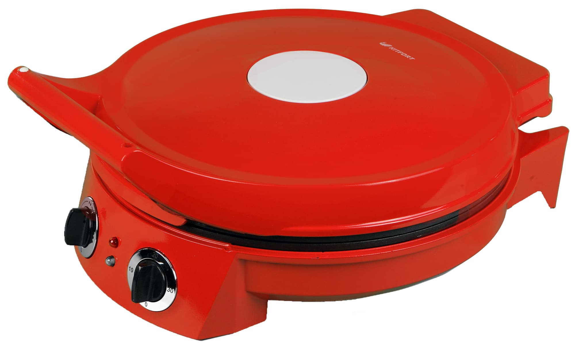 Управление пиццамейкером осуществляется с помощью двух механических переключателей. Первый из них (левый) отвечает за установку температуры. Чем больше значение на переключателе — тем выше температура. Это все, что положено знать пользователю.