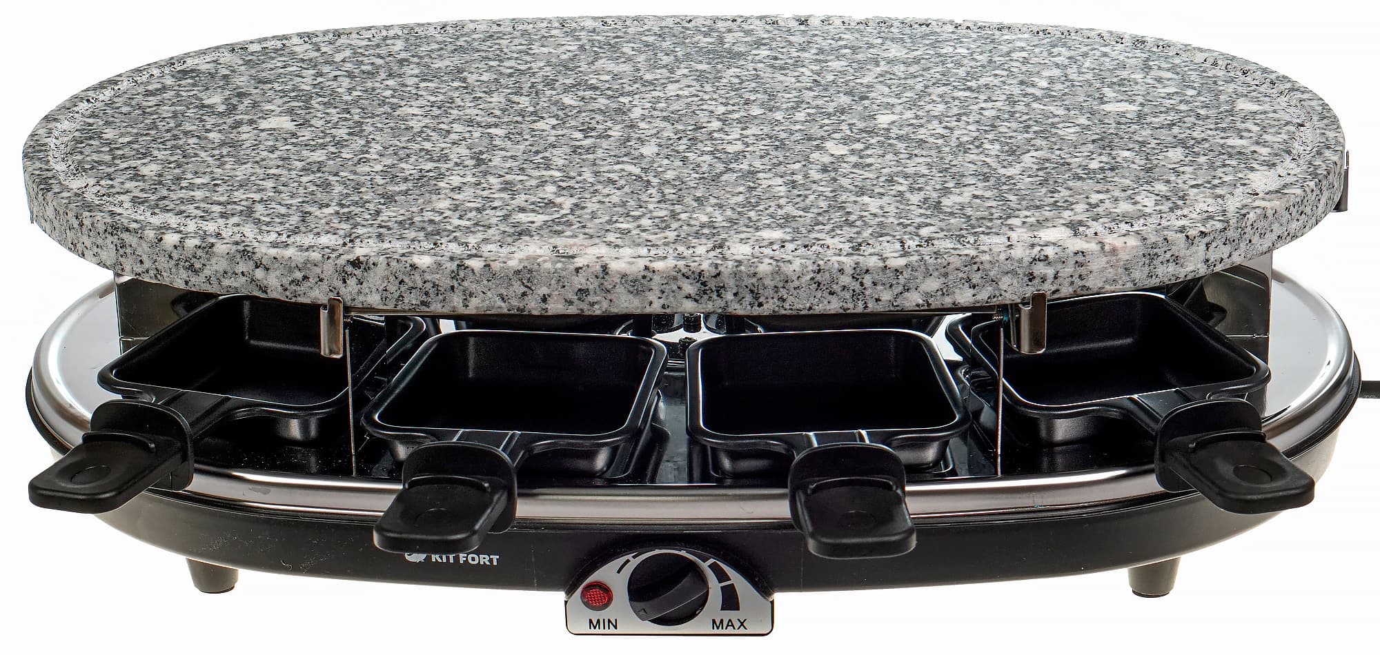 Мы долго размышляли, следует ли отнести следующий факт к минусу. Скорее, это конструктивная особенность прибора. Тем не менее, нужно быть готовым к тому, что находиться рядом с раклетницей тяжело, если в комнате жарко. От тэна идет довольно ощутимое тепло. Зато в зимнем доме или прохладным осенним вечером на даче раклетница-гриль Kitfort KT-1651 может стать тем центром, вокруг которого соберется вся семья или гости.