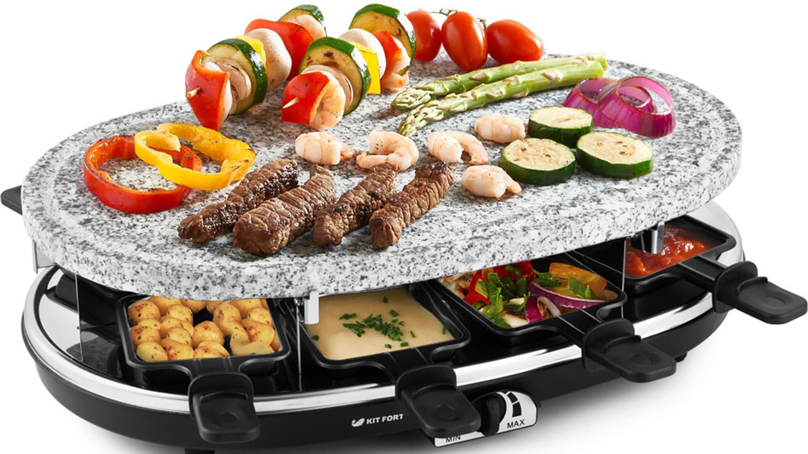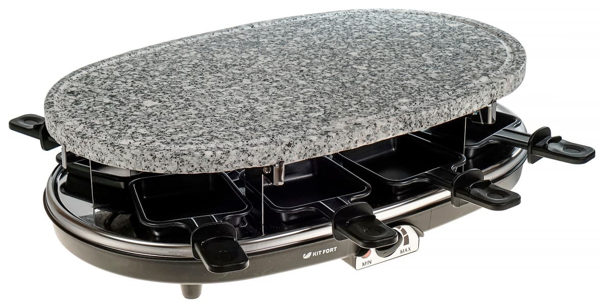 Раклетница-гриль Kitfort KT-1651 нам весьма понравилась. Тестирование превратилось в праздник. С помощью прибора можно приготовить блюда, традиционно относящиеся к грилю, плюс запечь в порционных сковородках овощи, мясо, рыбу или просто растопить сыр, чтобы сделать классический раклет. Прибор немалого размера, что позволяет им комфортно пользоваться компанией из 4-6 человек. Вообще в комплекте 8 сковородок, так что количество гостей можно смело увеличивать и до восьми — главное подобрать такое место для размещения прибора, чтобы гости могли свободно сидеть и иметь доступ к раклетнице.