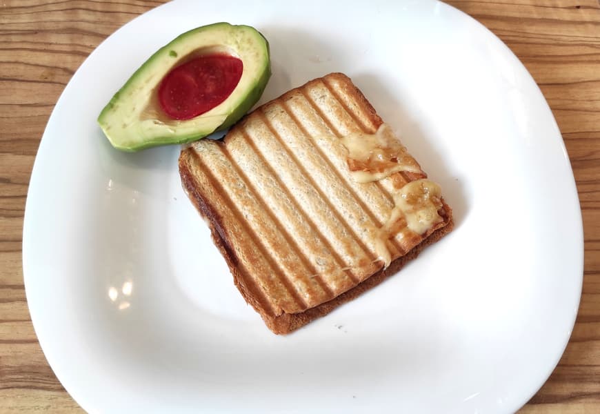 Беспроигрышный вариант быстрого и вкусного завтрака с рекордным числом вариаций. Мы готовили почти без изысков: между кусочками хлеба для тостов положили сыр, авокадо, помидор и каплю соуса барбекю. Две минуты на средней мощности, и сыр аппетитно зашкворчал на панели. Этот тост получился довольно плоским, так как мы прижали его крышкой. Для сравнения следующий бутерброд мы лишь слегка прикрыли, обнаружив, что тогда время подрумянивания увеличивается в два раза и более.
