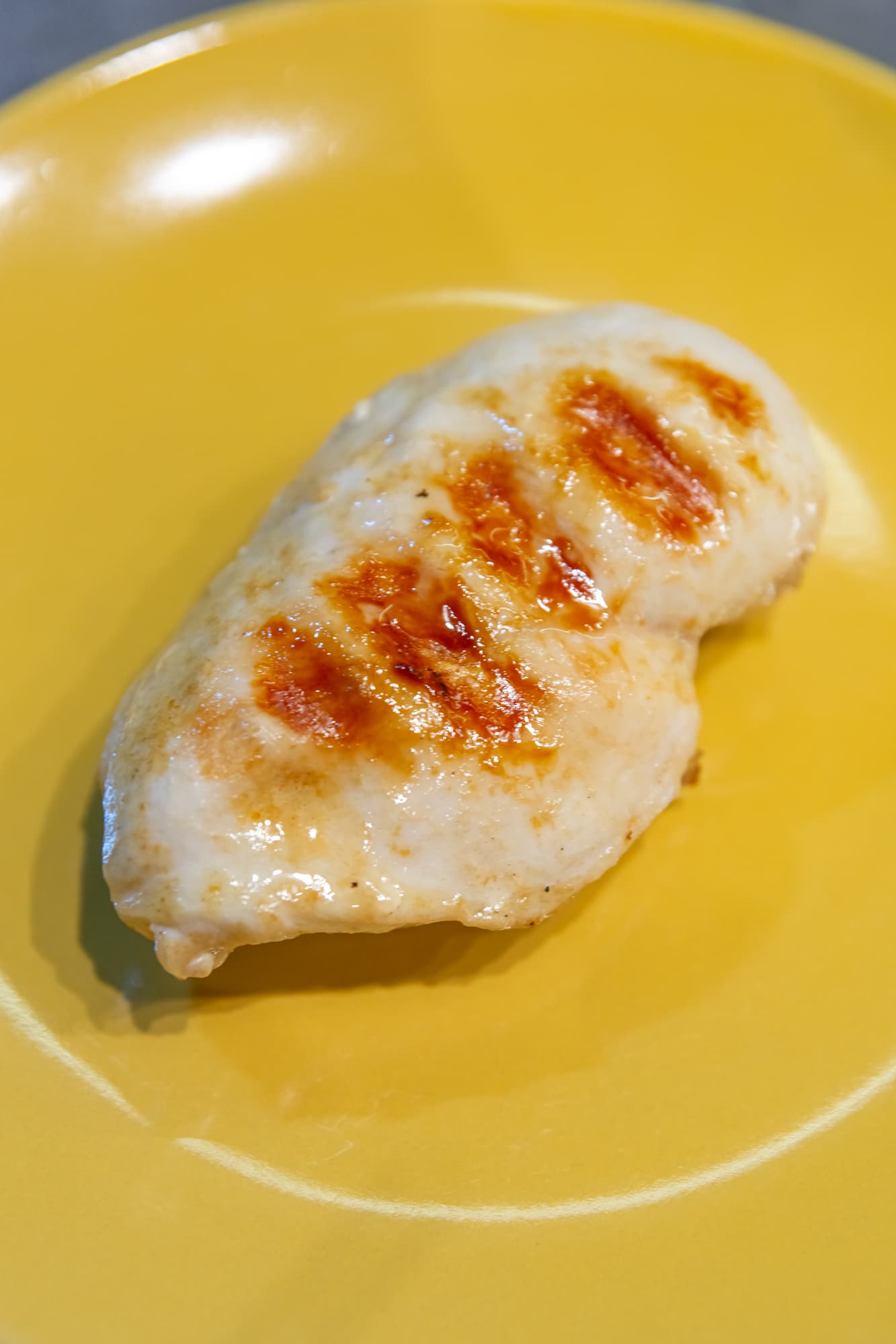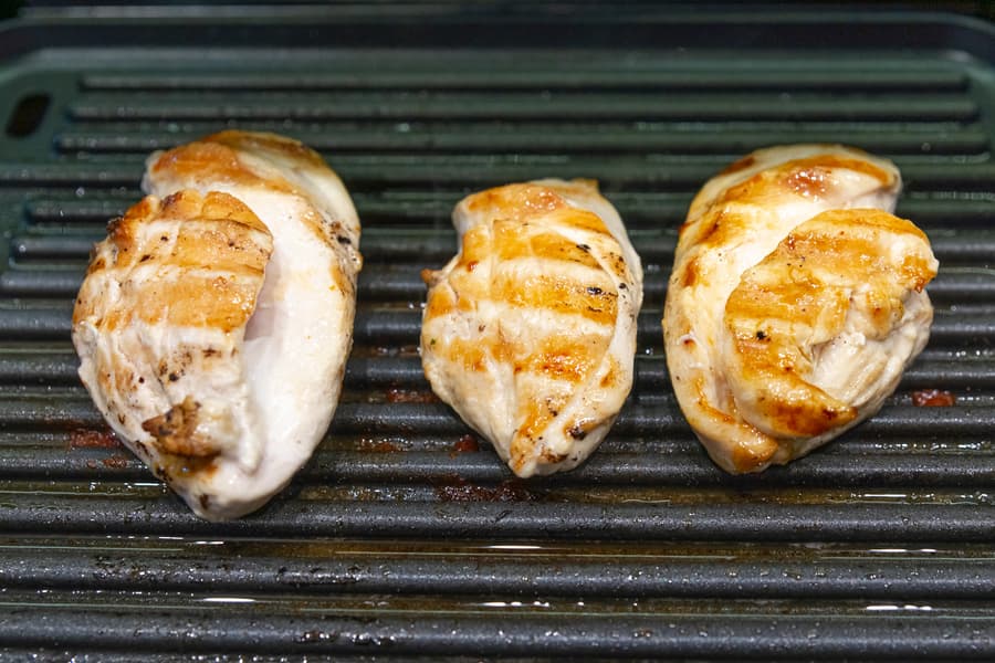 В общей сложности гриль без учета нагрева проработал порядка 16 минут. Белое куриное мясо внутри получилось сочным, а сверху приобрело аппетитные полоски.