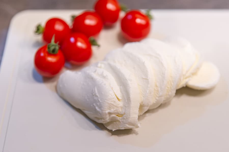 Ингредиенты для начинки: 2 больших помидора, зубчик чеснока, 150 г помидоров черри, 200 г свежей и 150 г полутвердой моцареллы, смесь сухих итальянских трав, свежие листики базилика