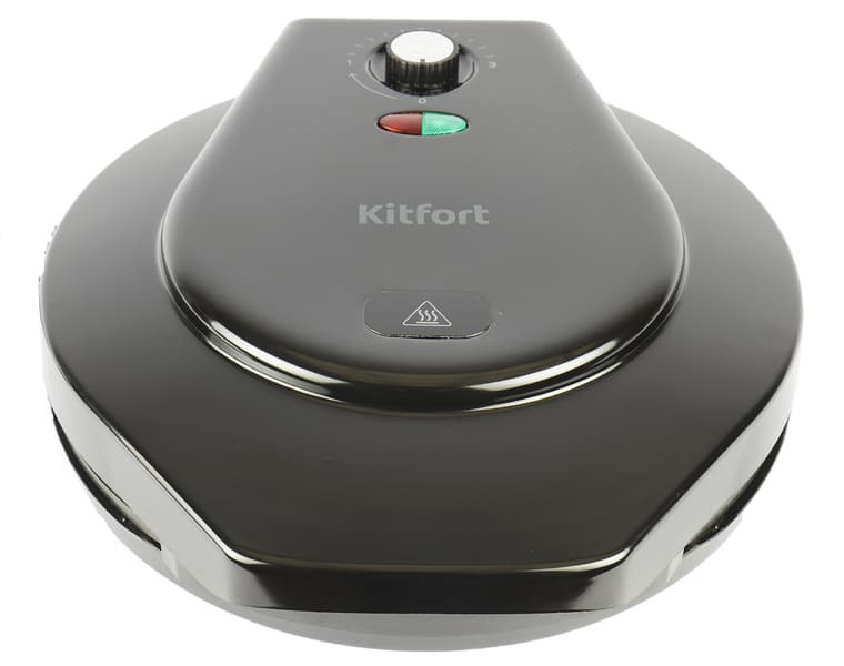 По конструкции пиццамейкер Kitfort KT-1681 похож на большую бутербродницу. Внутри пластикового корпуса устройства находятся две несъемные панели за которыми расположены нагревающие элементы. Единственный элемент управления — круглая поворотная ручка регулятора температуры располагается на лицевой панели прибора (крышке). Под ручкой находятся индикаторы питания и нагрева.