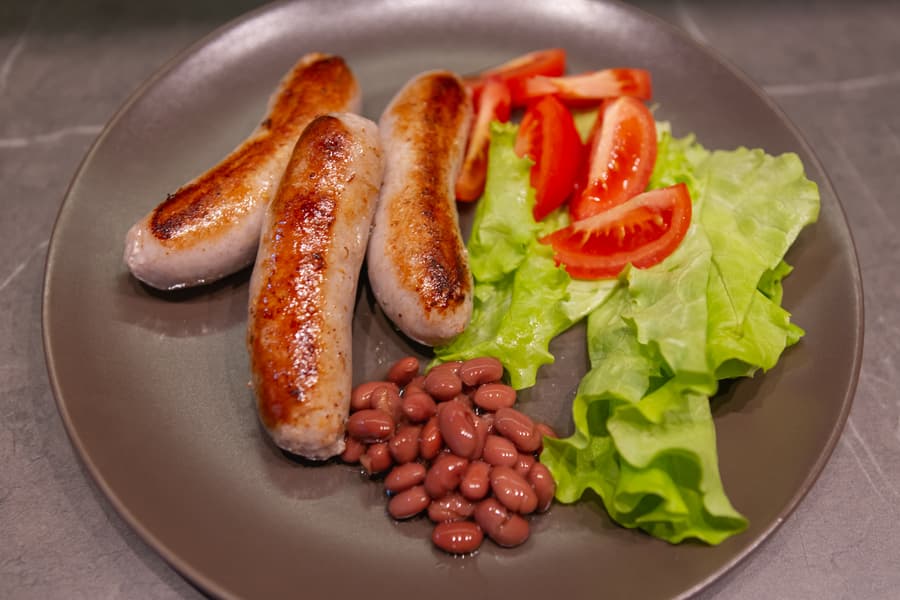 Все поджарилось равномерно и довольно быстро. Ничего не подгорело. Колбаски получились сочными.