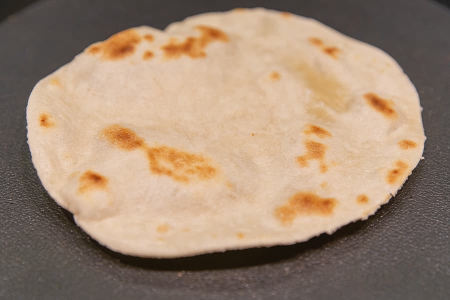 Лепешки обжаривали на каждой стороне в среднем до минуты, ориентируясь на появление пузырей и золотистых подпалин.