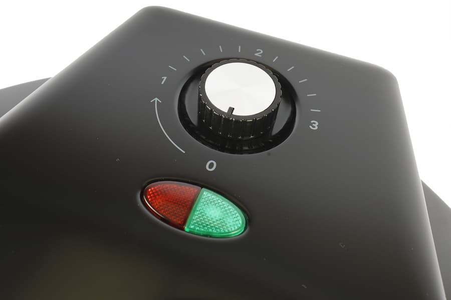 Пиццамейкер Kitfort KT-1681 управляется поворотной ручкой регулятора температуры. Для ориентирования в момент выставления температуры нагрева вокруг ручки нанесены цифры и засечки.