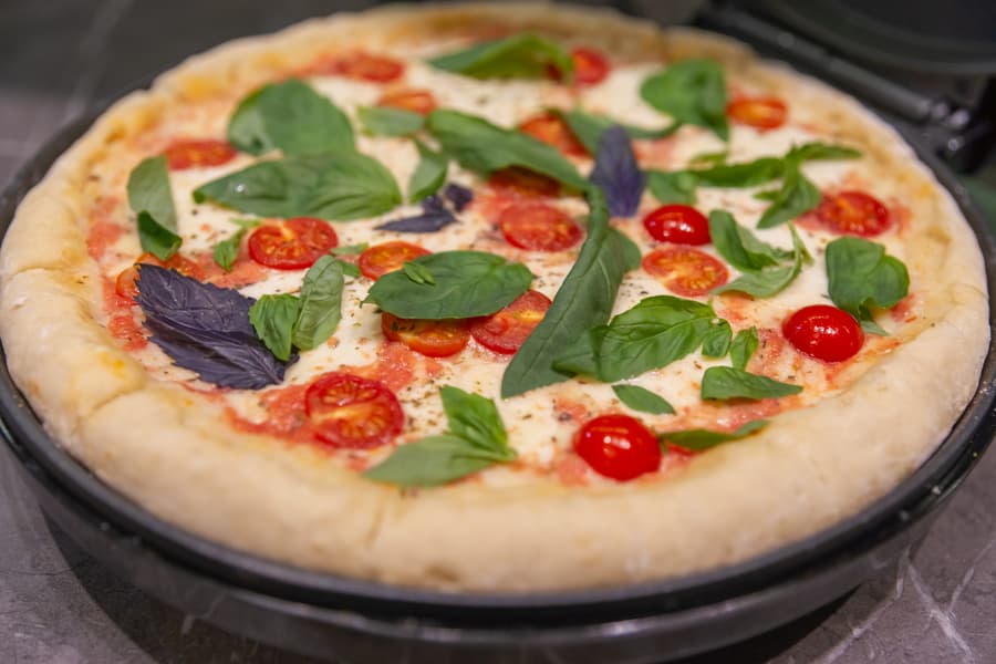 Обычно, в случае с духовкой, мы предварительно выкладываем пиццу на пекарской бумаге и после помещаем на противень в разогретую духовку. Здесь процесс оказался сложнее, в инструкции на этот счет есть указания: