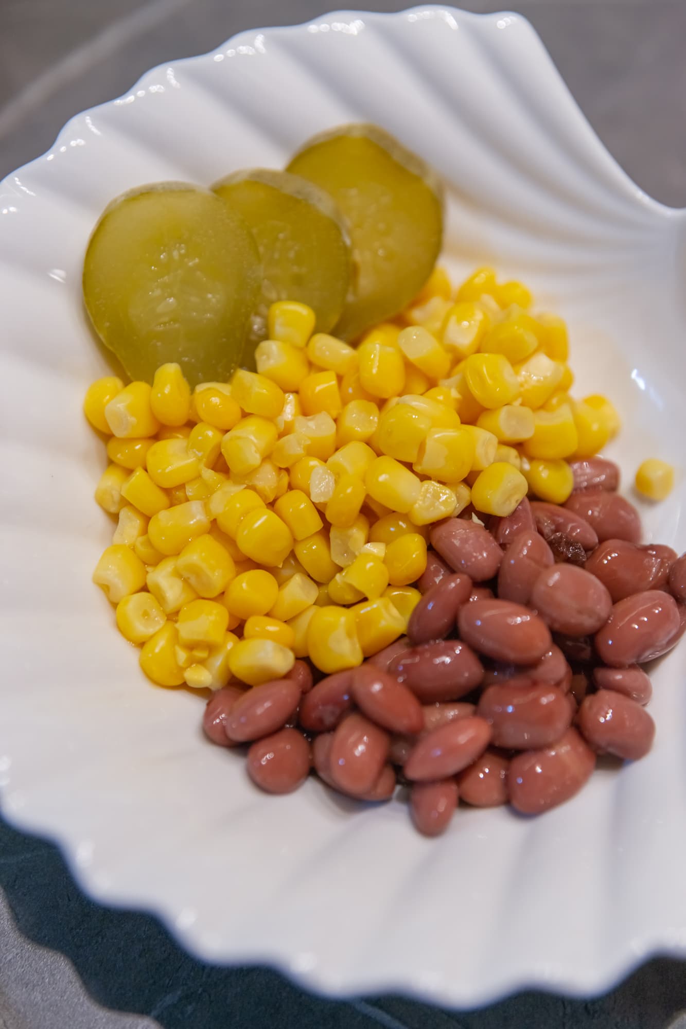 Ингредиенты для начинки: филе курицы, шампиньоны, 50 мл сливок, помидоры, авокадо, 1 банка консервированной красной фасоли, 1 банка кукурузы, сулугуни, соленый или маринованный огурец, пучок кинзы, лимон