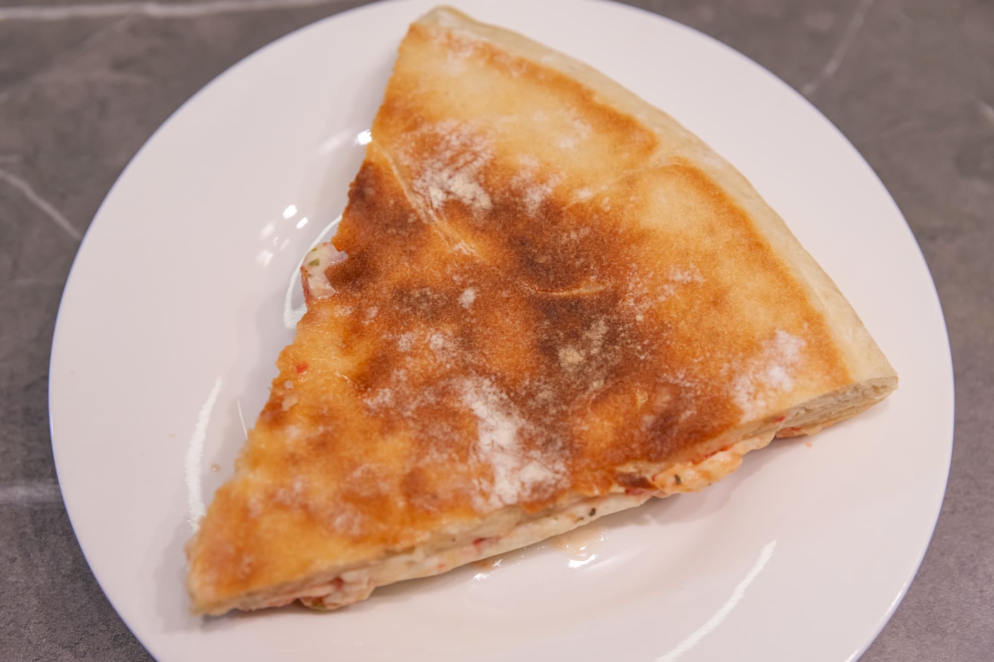 Обжаривали заготовку до тех пор, пока с обеих сторон не появился румянец, а сыр внутри не расплавился.
