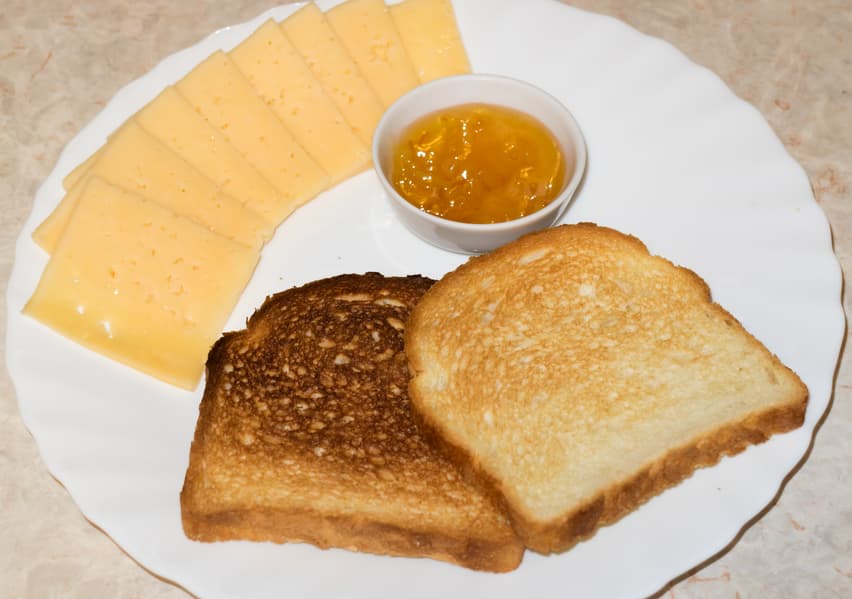 Начать решили с самого простого — поджаривания тостов из специально предназначенного для этого хлеба. Положили ломтик хлеба на съемную решетку и включили таймер на пять минут. По завершении цикла тост был, на наш вкус, готов. Прожарка неравномерна, снизу ломтик подсушен более-менее ровно, а вот сверху явно выделяется место, напротив которого находился нагреватель. Однако мы получили классический тост, а не кусок сухаря — поверхность хлеба подсушена и хрустит, сердцевина мягкая.