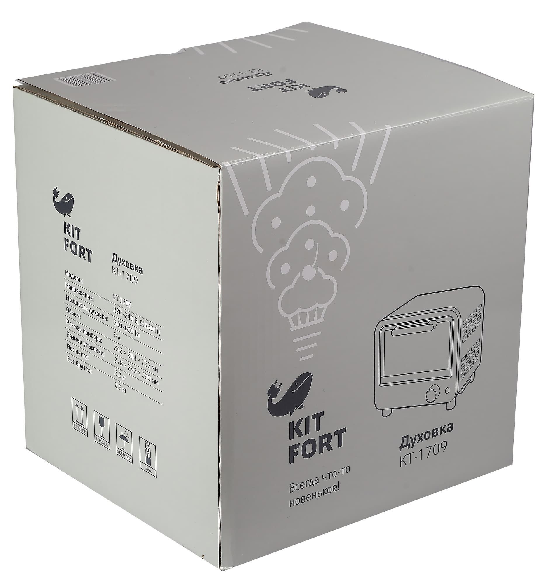 Мини-печь Kitfort KT-1709 идеально подойдет для одного-двух человек, которые очень любят поджаренный хлеб с расплавленным сыром. Либо в случае, когда человеку не требуется большая духовка, чтобы готовить разнообразные блюда. Прибор компактный, занимает очень мало места. Благодаря кварцевым нагревателям, печь быстро разогревается и столь же быстро поджаривает тосты, горячие бутерброды и сэндвичи. Можно в ней приготовить и что-то более существенное, однако это потребует большего количества времени и внимания. В принципе, печь хорошо справляется с поджариванием яичницы, колбасок, рыбного филе, но рассчитывать на качественное приготовление чего-то более сложного не стоит.