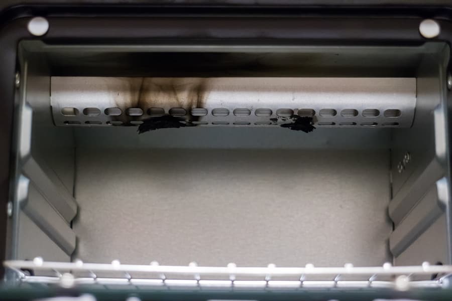 Пригоревший сыр и слоеное тесто удалились с решетки верхнего нагревателя без проблем. Мы дождались, пока духовка остыла, затем протерли загрязненные места влажной тканью. Никаких следов от гари на поверхности внутренней камеры не осталось.