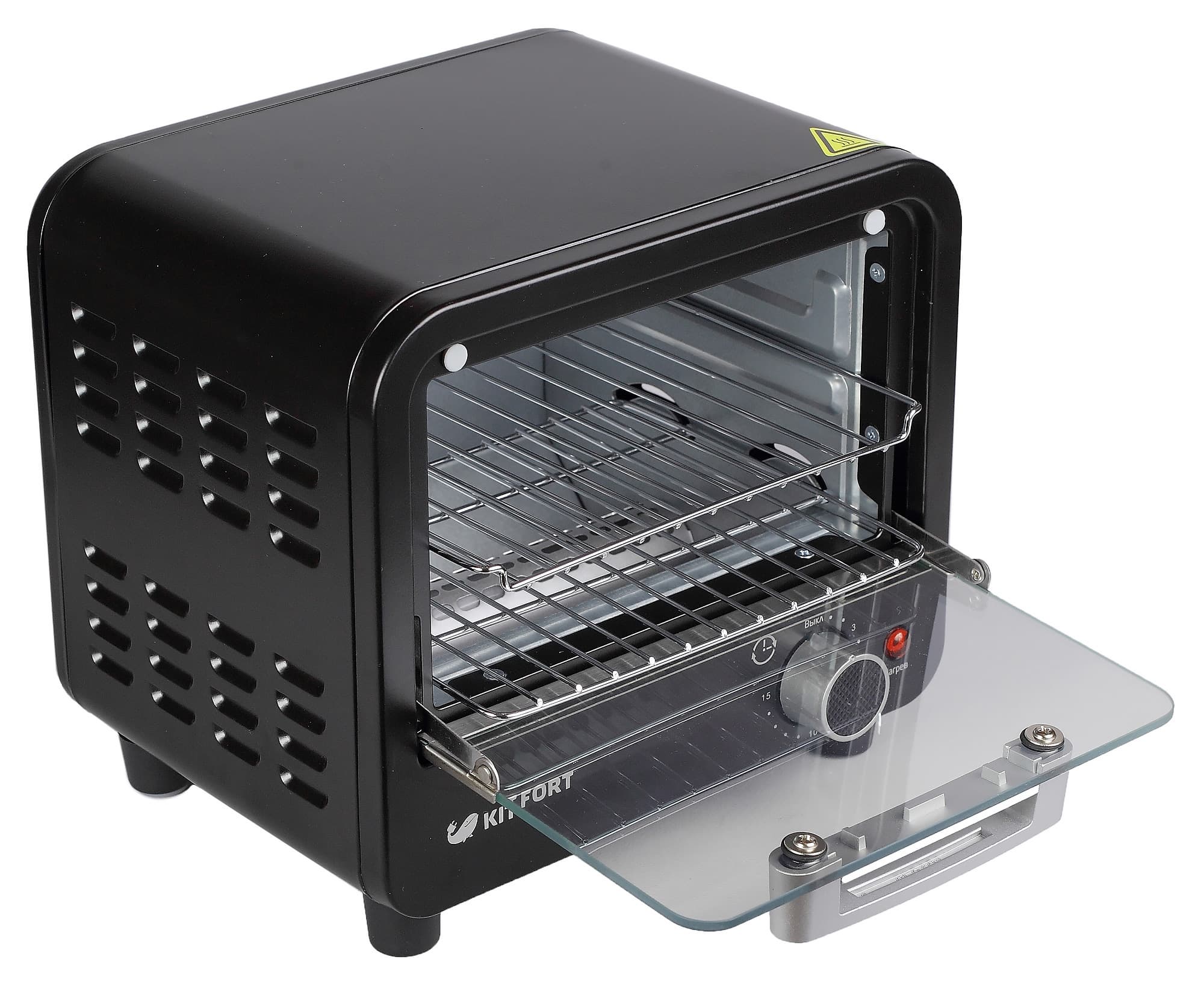 Мини-печь Kitfort KT-1709 предназначена для приготовления тостов, горячих бутербродов и сэндвичей. Помимо того, с использованием противня в ней можно приготовить одну порцию запеченного блюда — поджарить яйца, запечь овощи или кусок рыбы, подогреть пару кусочков пиццы.